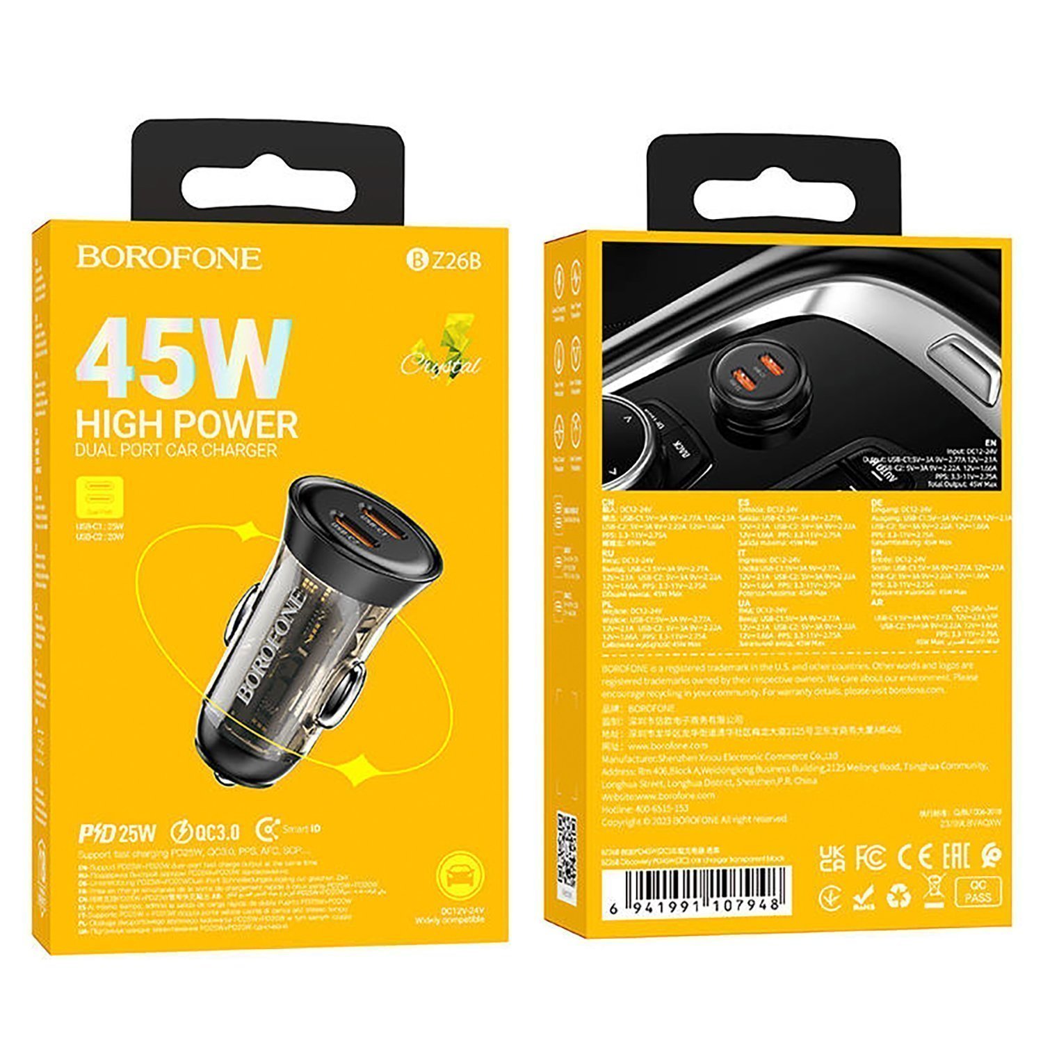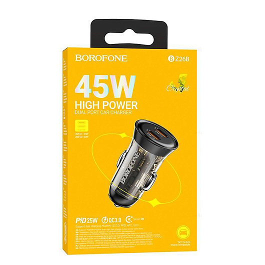Адаптер Автомобильный Borofone BZ26B Discovery PD45W (transparent black)