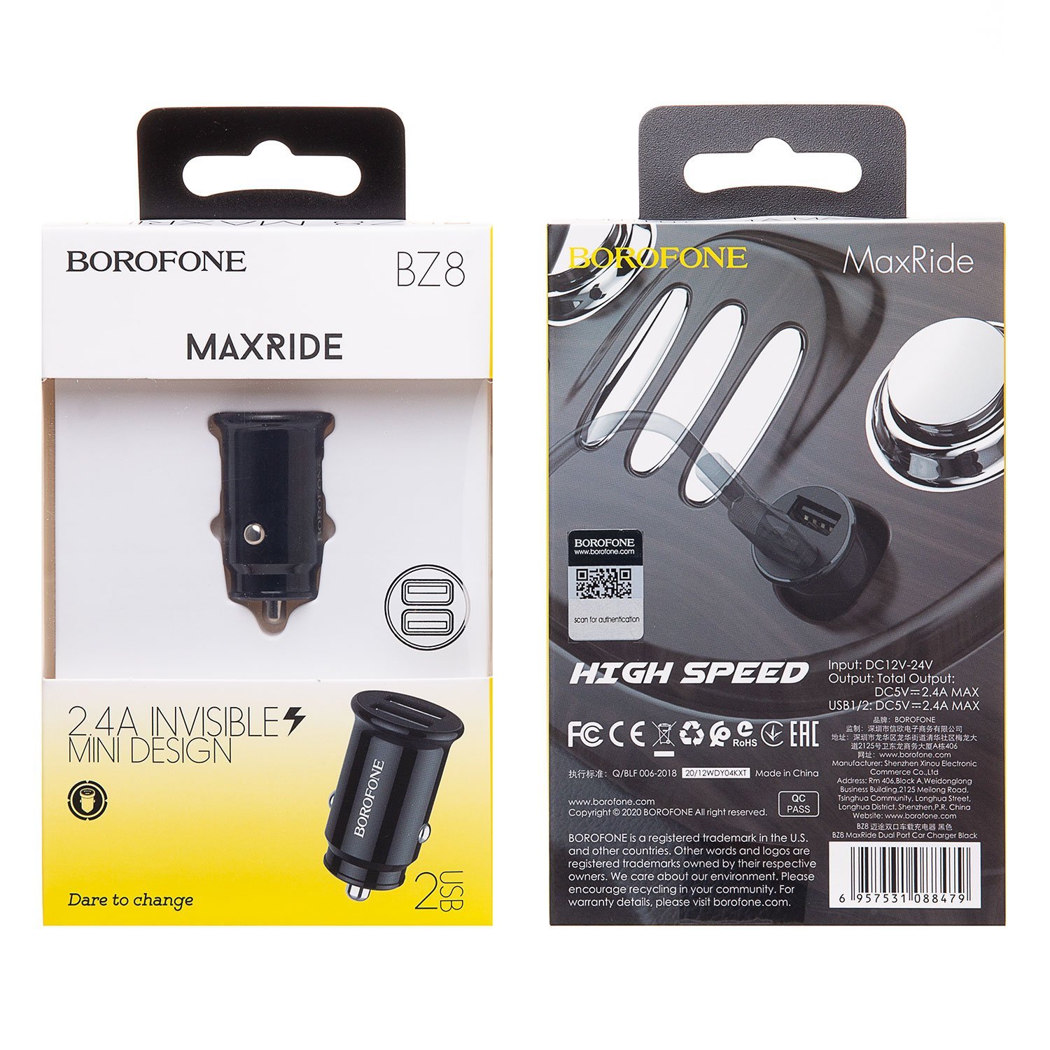 Адаптер Автомобильный Borofone BZ8 MaxRide 2USB/5V/2.4A (black)