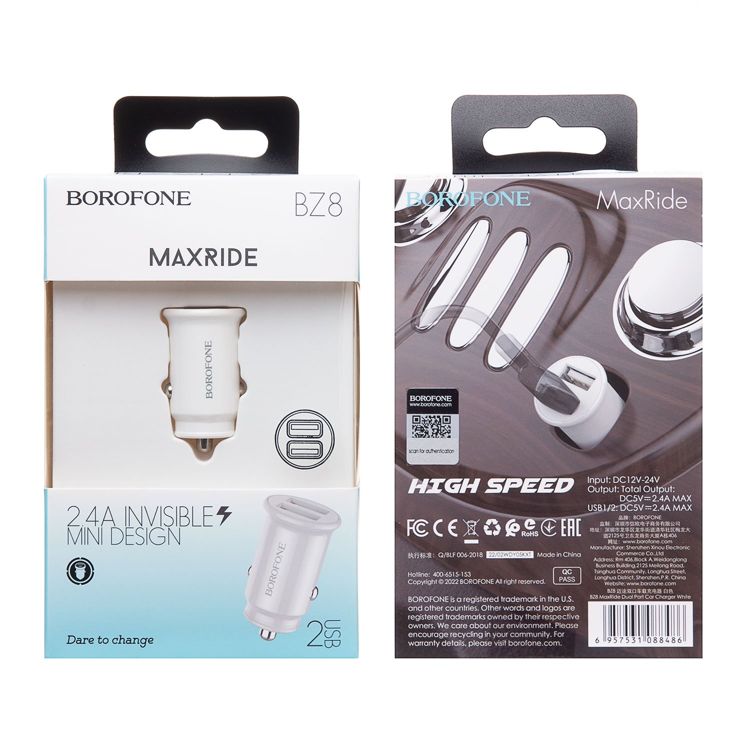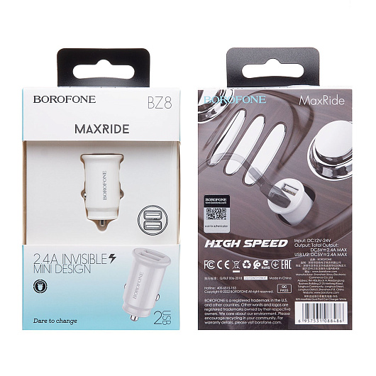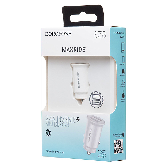 Адаптер Автомобильный Borofone BZ8 MaxRide 2USB/5V/2.4A (white)