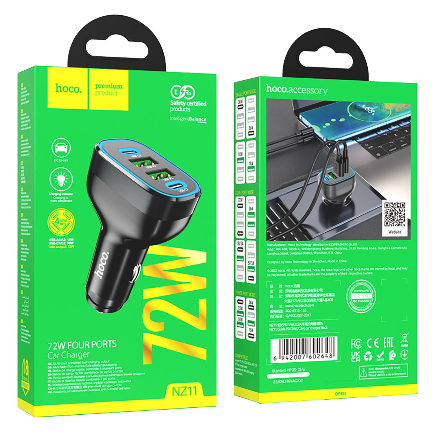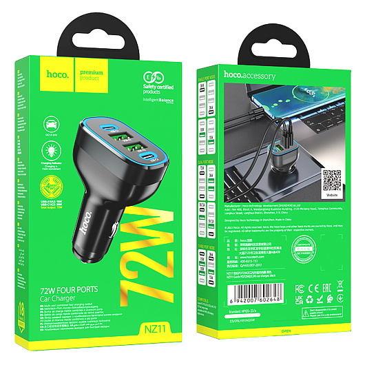 Адаптер Автомобильный Hoco NZ11 Guide PD72W+QC3.0 (black)