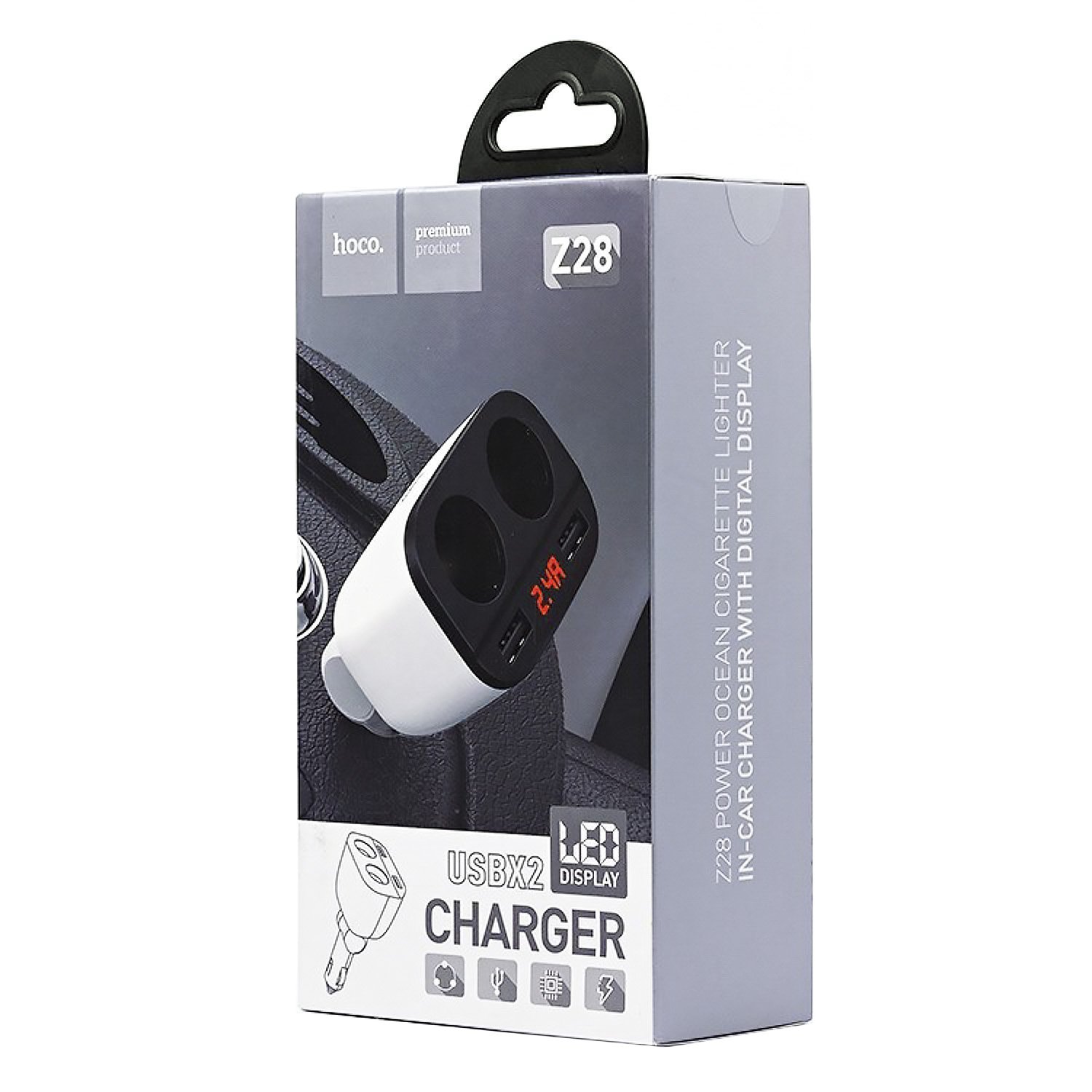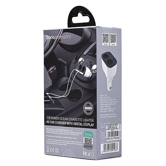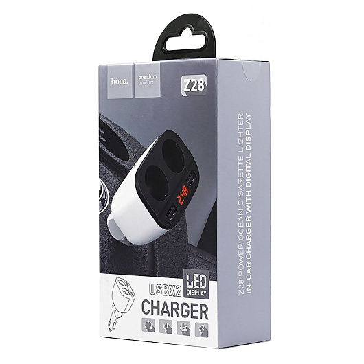 Адаптер Автомобильный Hoco Z28 разъём прикуривателя/2USB/5V/3.1A (white)