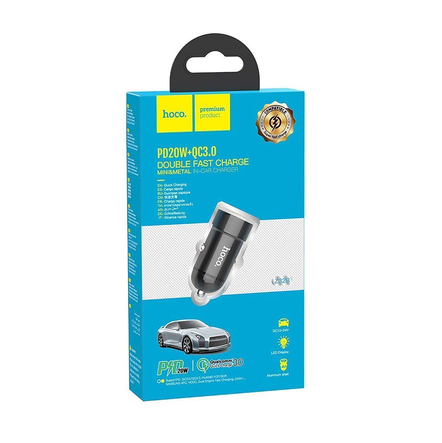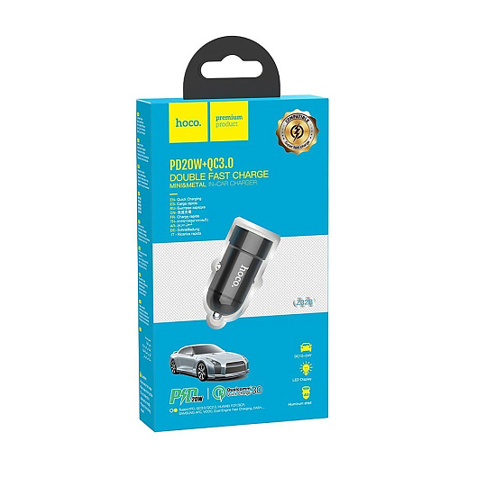 Адаптер Автомобильный Hoco Z32B Speed up PD20W+QC3.0 (black)