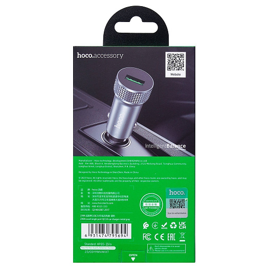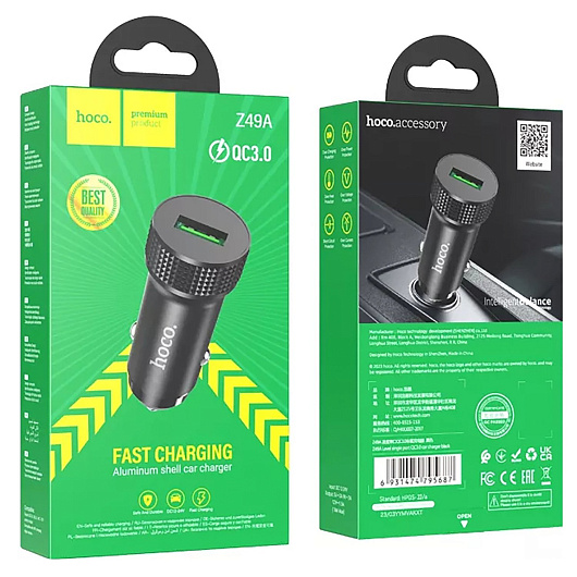 Адаптер Автомобильный Hoco Z49A Level QC3.0 USB/5V/3A (metal gray)