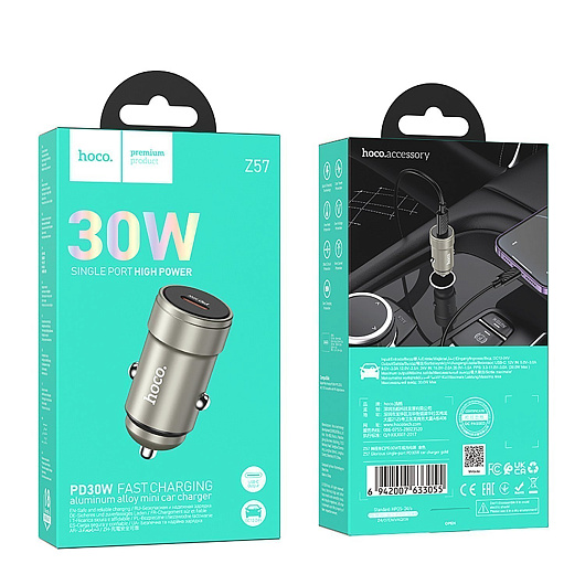 Адаптер Автомобильный Hoco Z57 Glorious PD30W Type-C/5V/3A (metal gray)