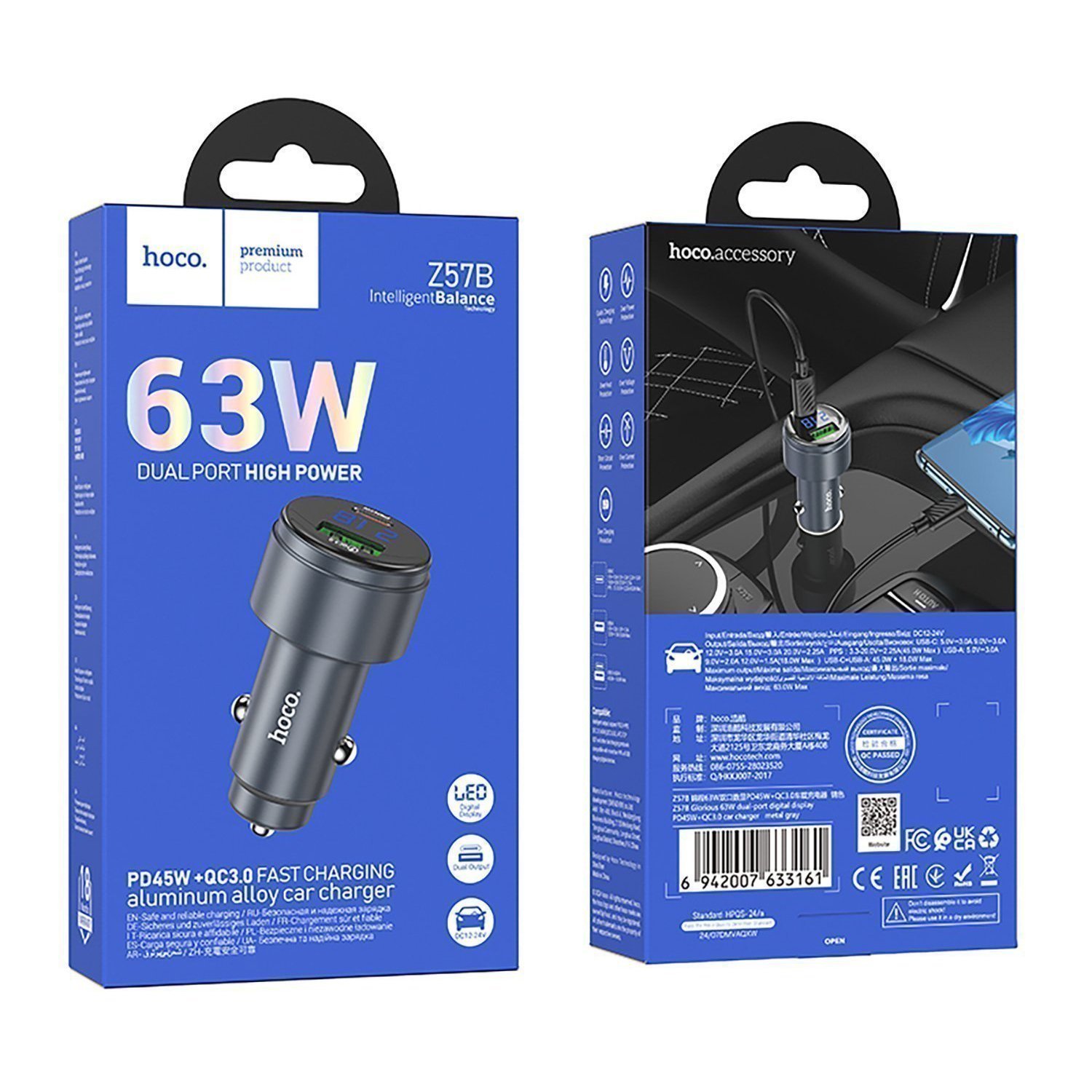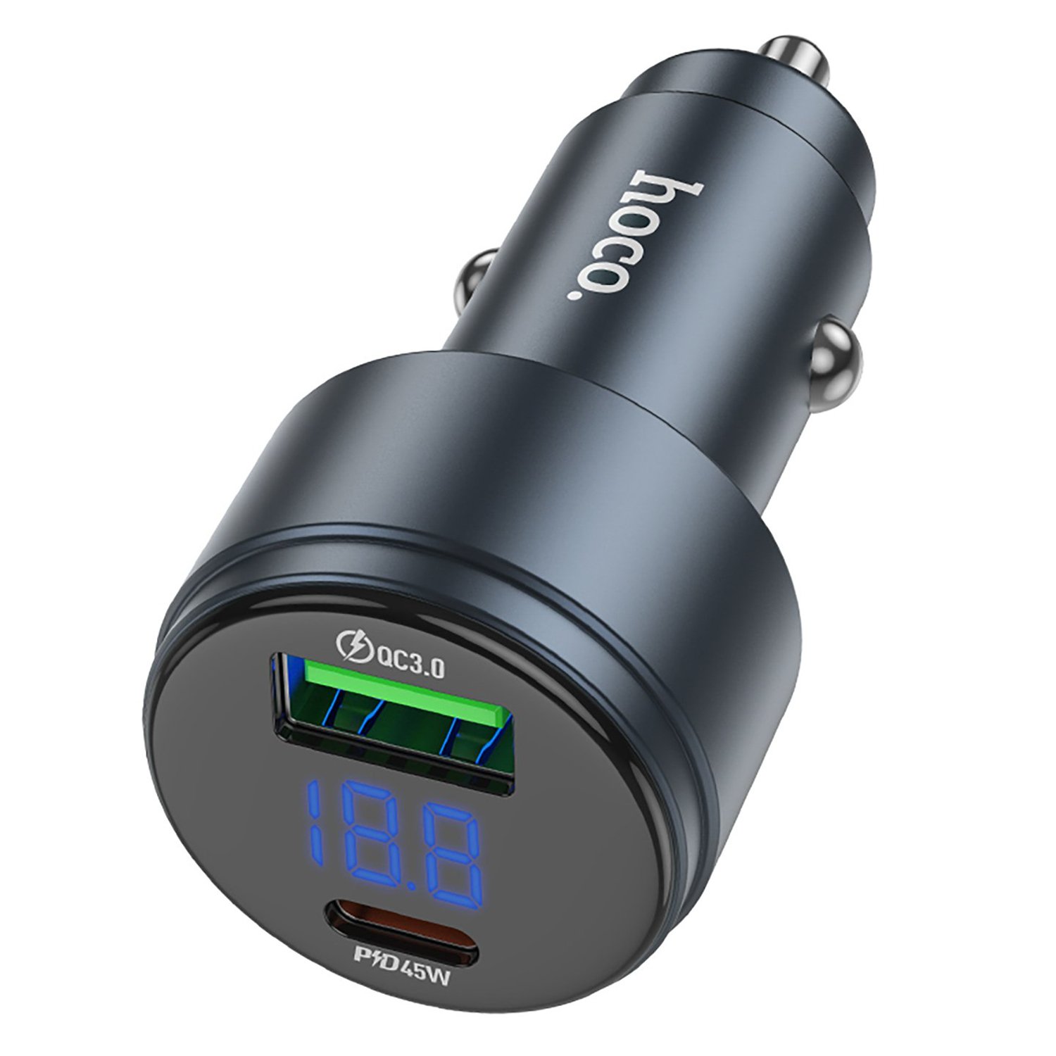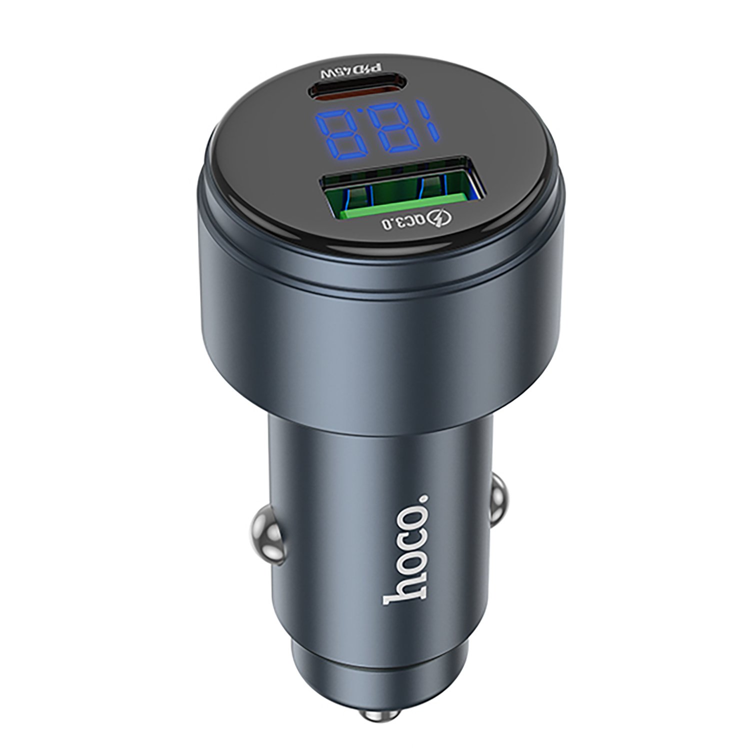 Адаптер Автомобильный Hoco Z57B Glorious 63W PD45W+QC3.0 USB/Type-C/5V/3A (metal gray)