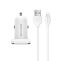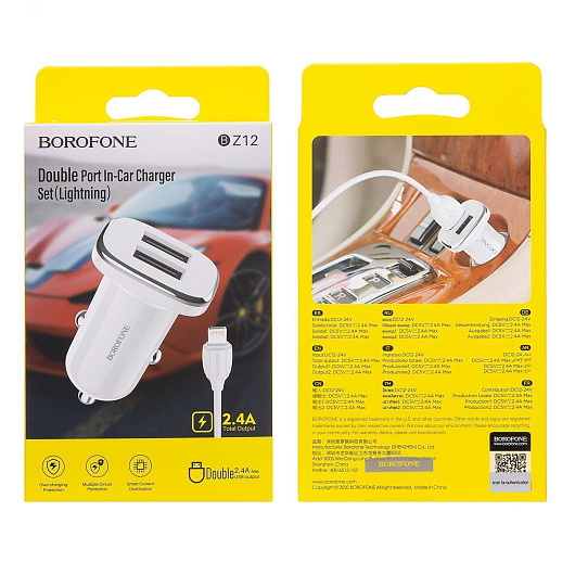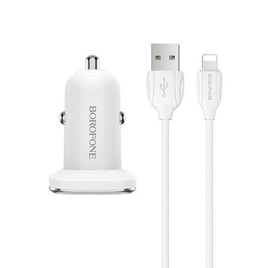 Адаптер Автомобильный с кабелем Borofone BZ12 Lasting 2USB/5V/2.4A (USB/Lightning) (white)