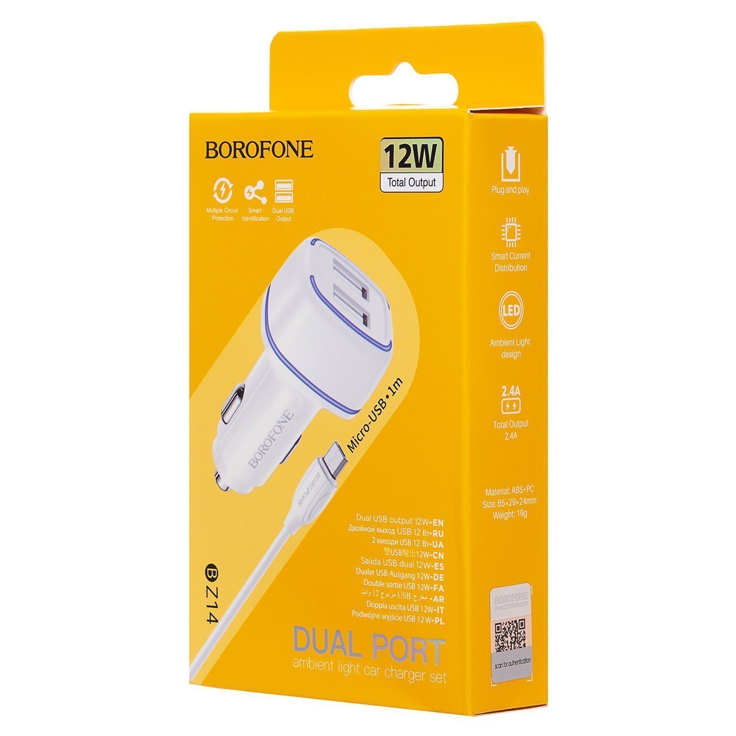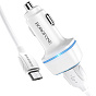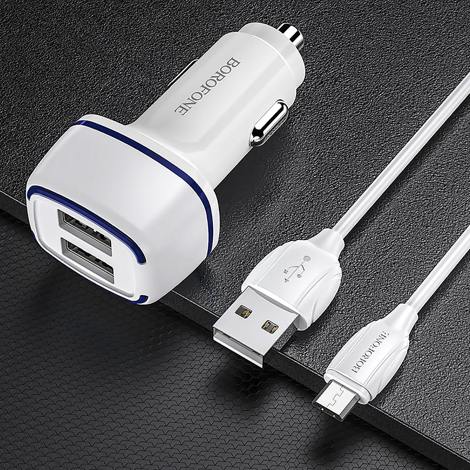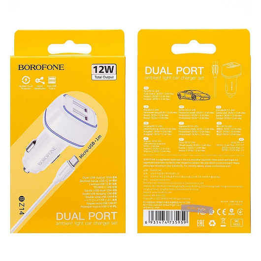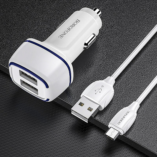 Адаптер Автомобильный с кабелем Borofone BZ14 Max 2USB/5V/2.4A (USB/Micro USB) (white)