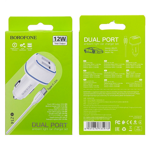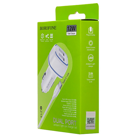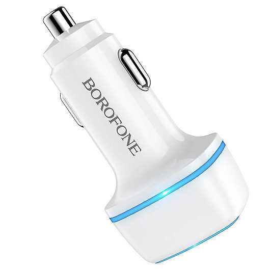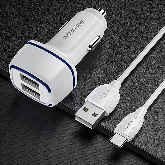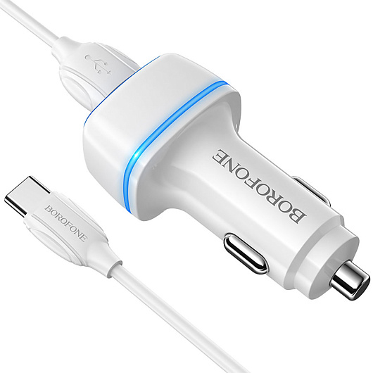 Адаптер Автомобильный с кабелем Borofone BZ14 Max 2USB/5V/2.4A (USB/Type-C) (white)