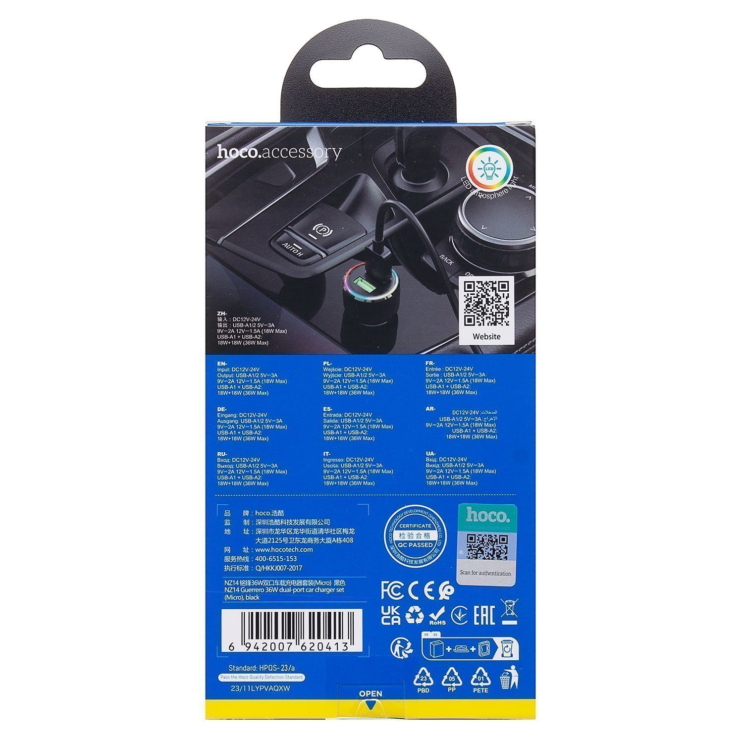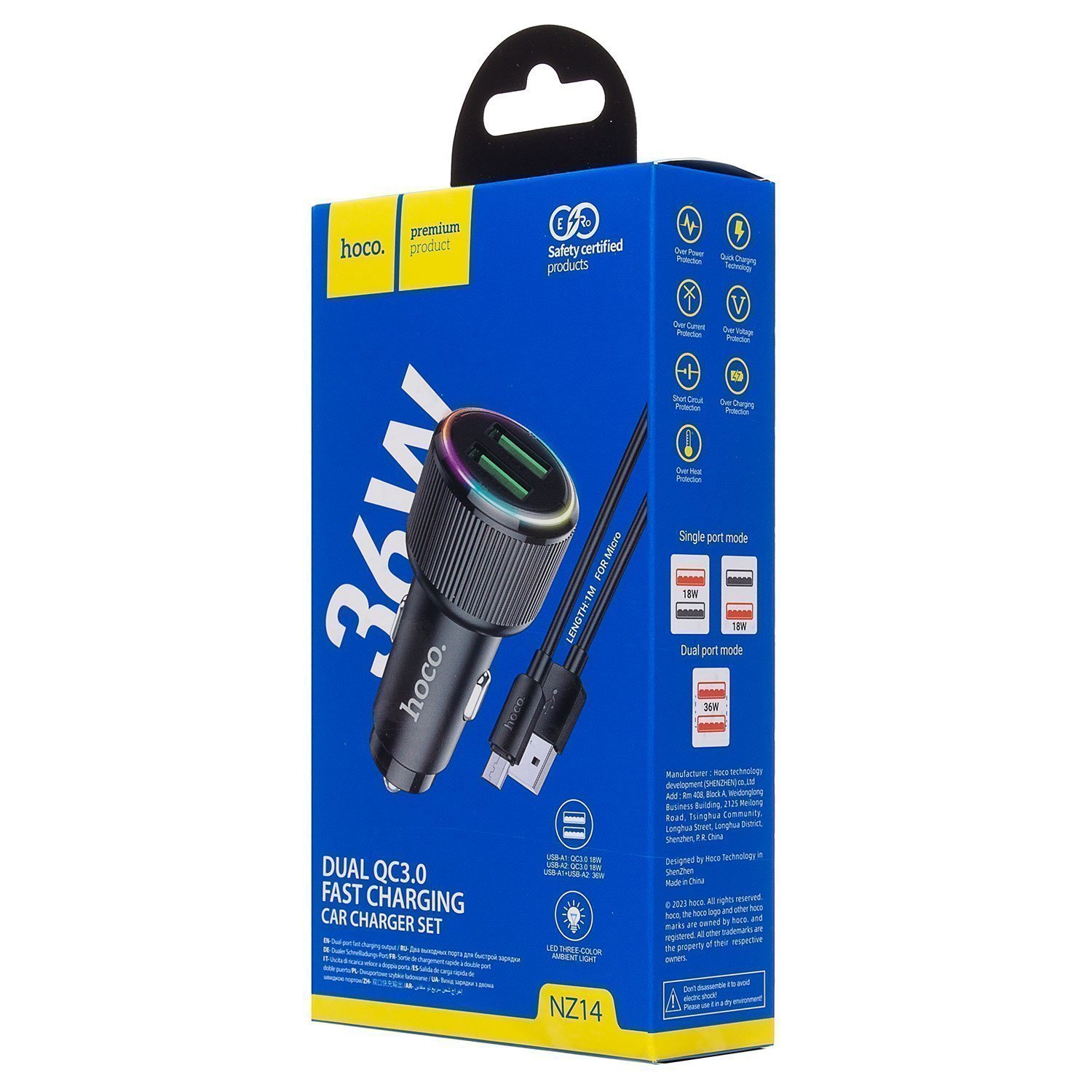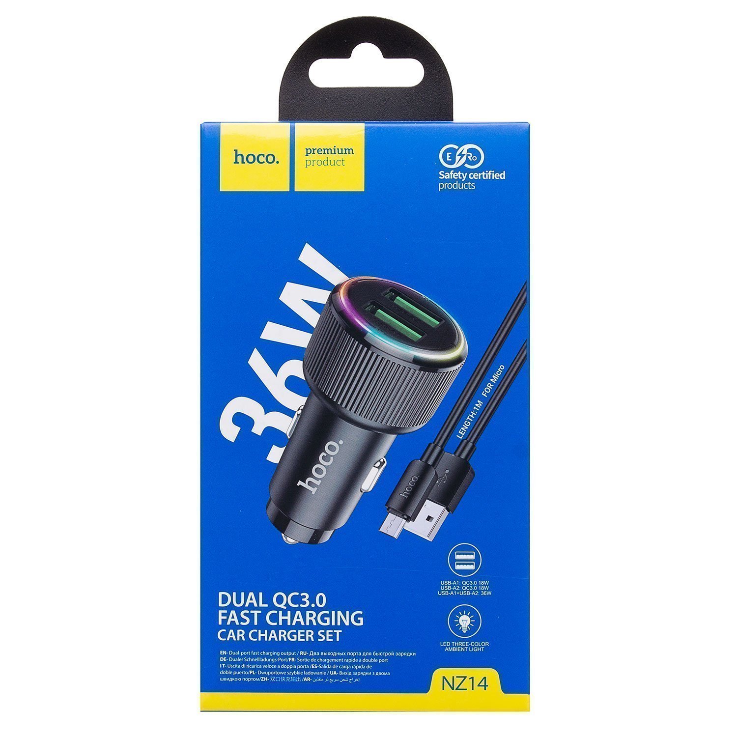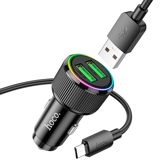 Адаптер Автомобильный с кабелем Hoco NZ14 Guerrero 36W (Micro) (black)