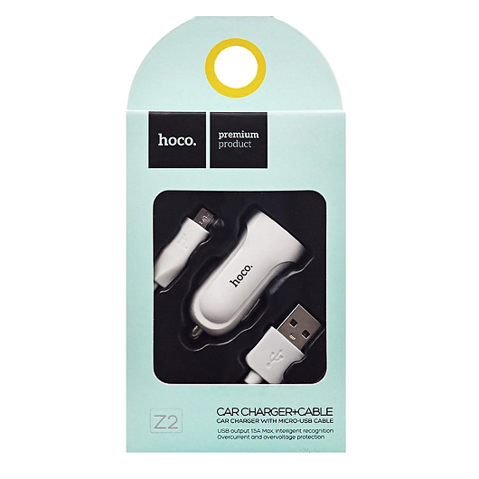 Адаптер Автомобильный с кабелем Hoco Z2 1USB/5V/1.5A (USB/Micro USB) (white)