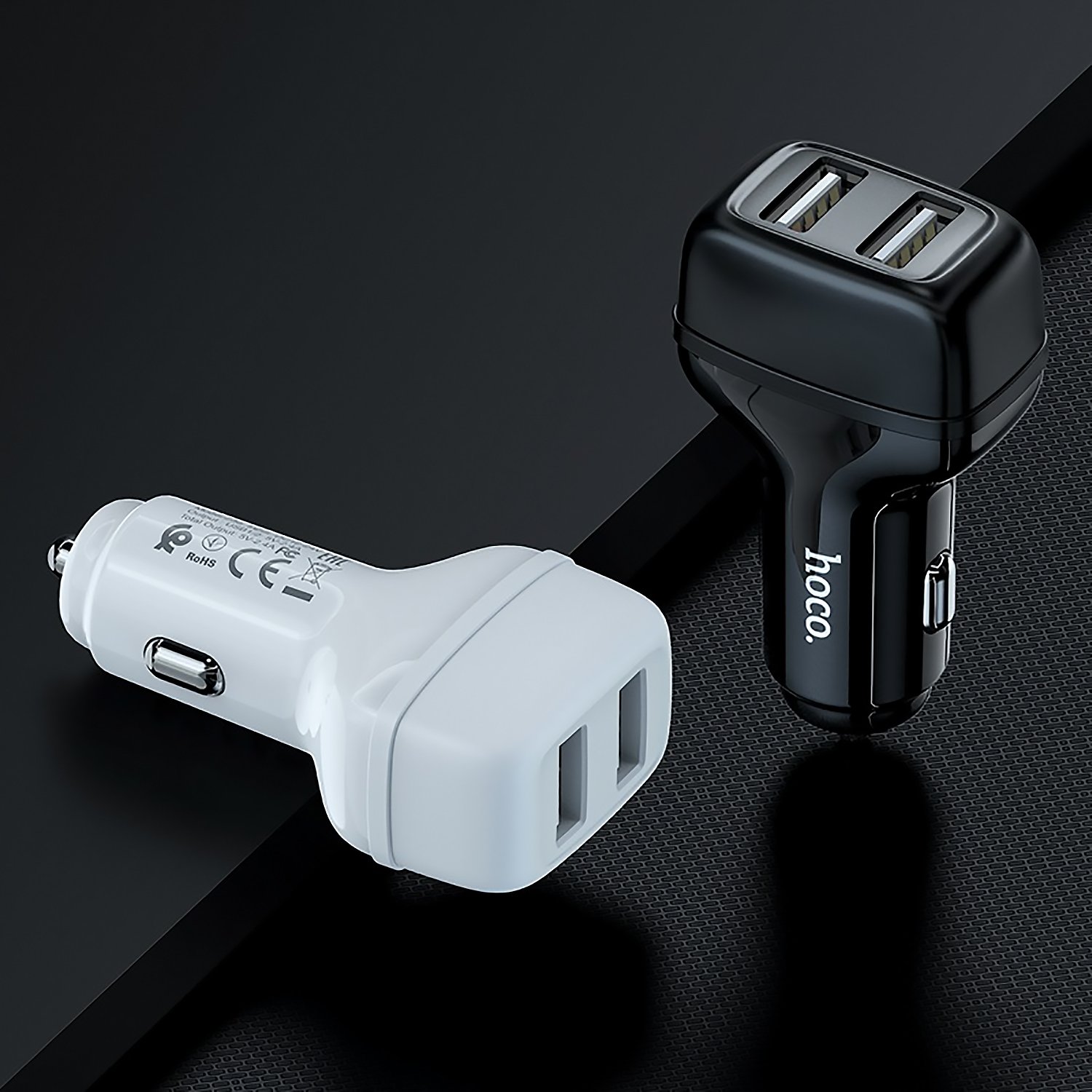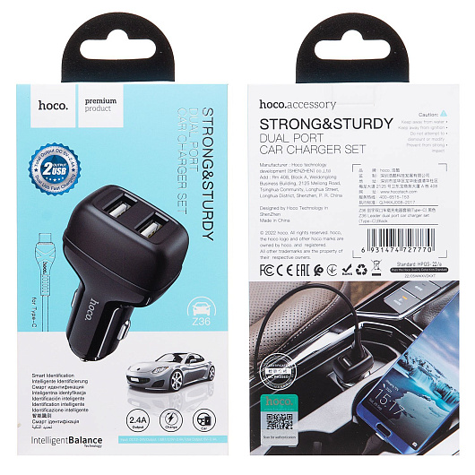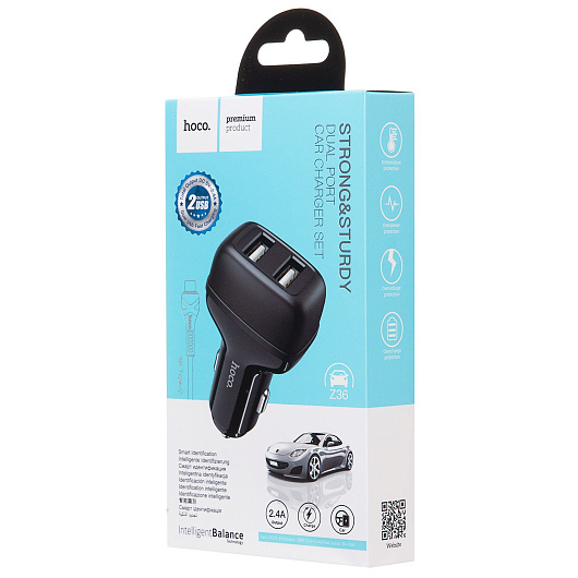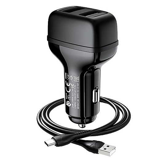Адаптер Автомобильный с кабелем Hoco Z36 Leader 2USB/5V/2.4A +Type-C (black)