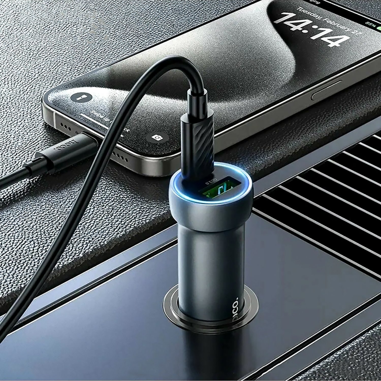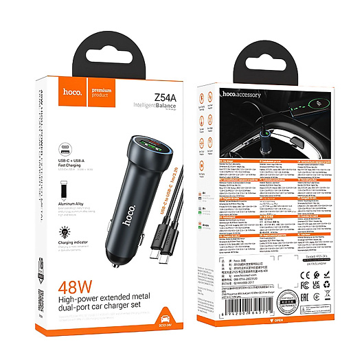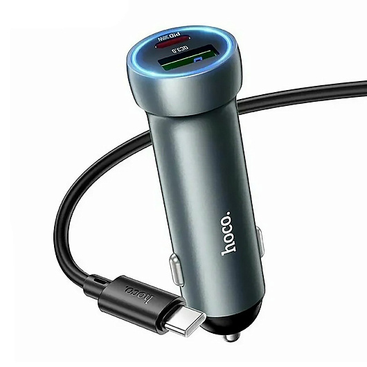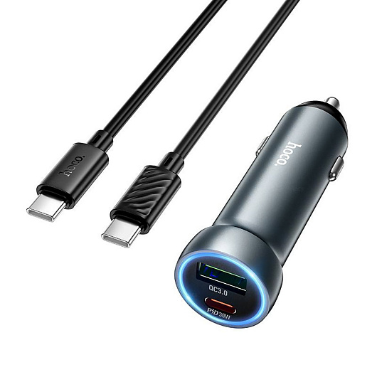 Адаптер Автомобильный с кабелем Hoco Z54A Prosperous USB/Type-C 48W (Type-C/Type-C) (metal grey)