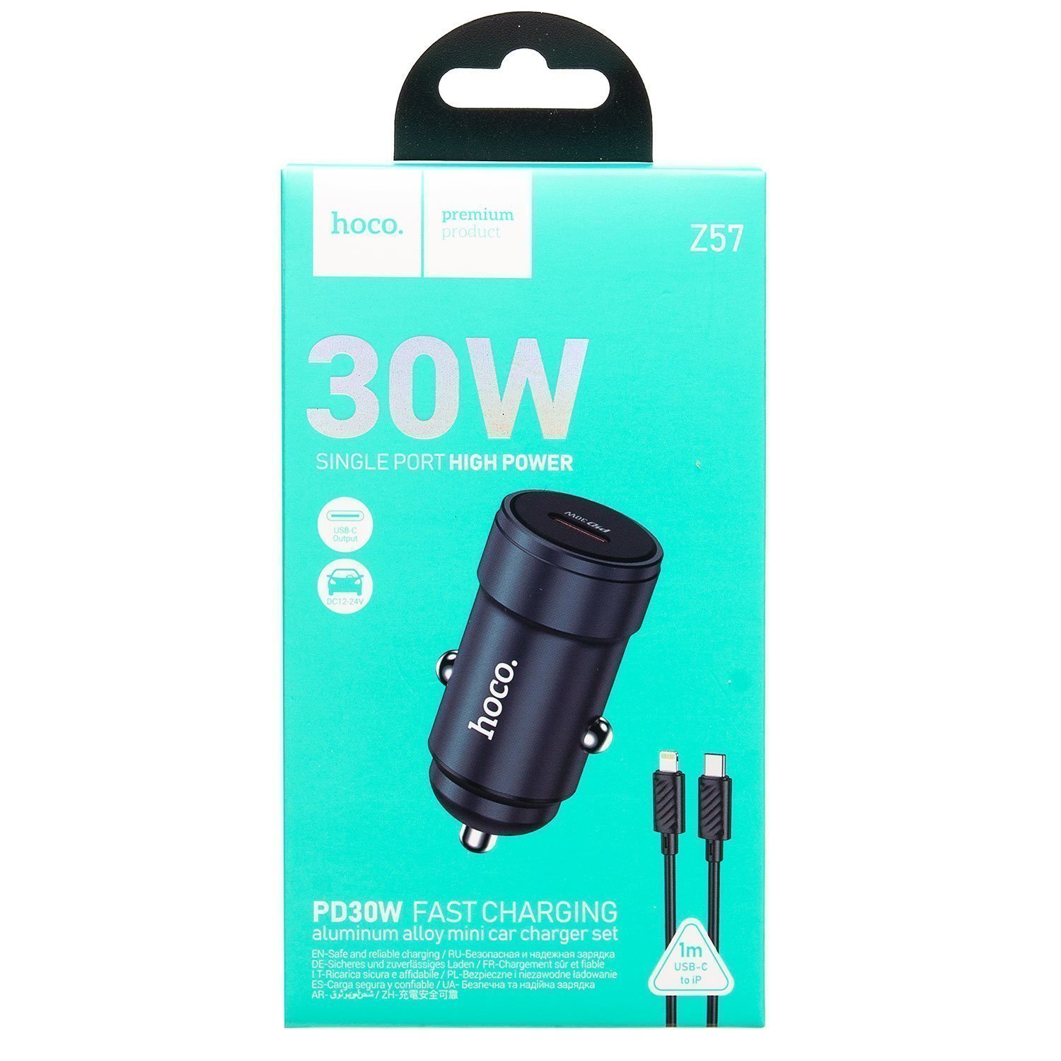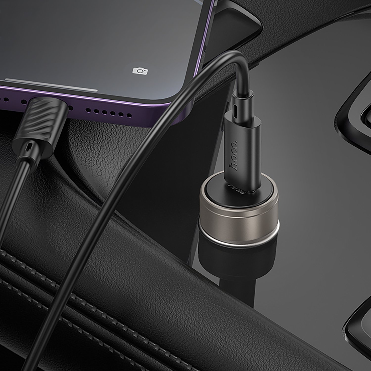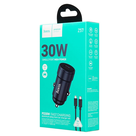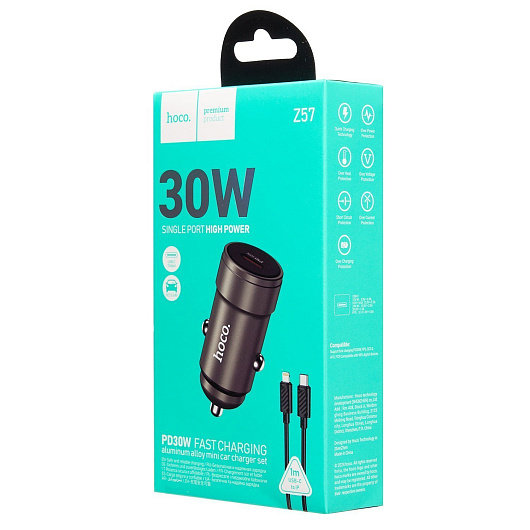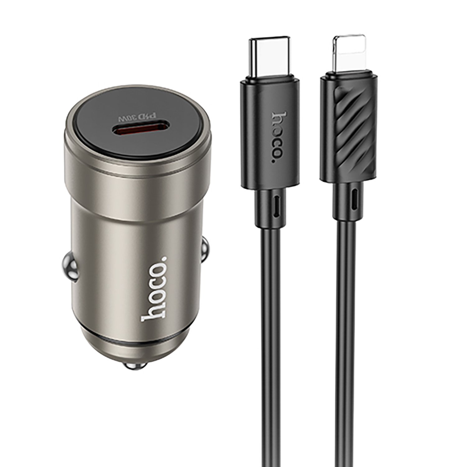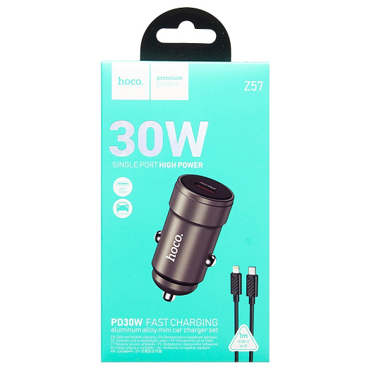 Адаптер Автомобильный с кабелем Hoco Z57 Glorious PD30W (Type-C/Lightning) (metal gray)