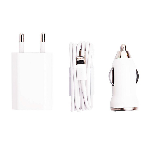 Адаптер Сетевой +Авто (набор) - 5S USB 1A/5W (Lightning) (white)