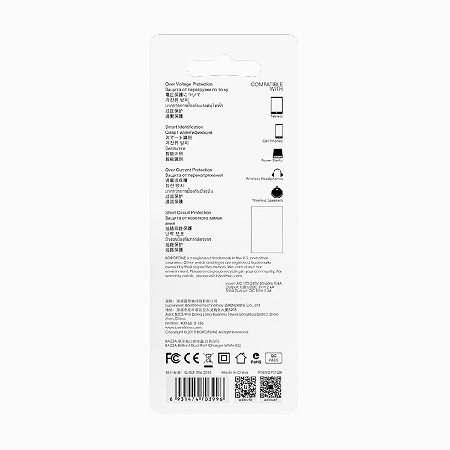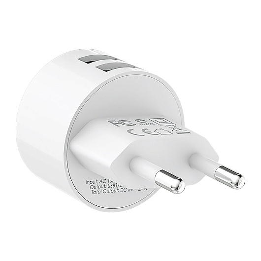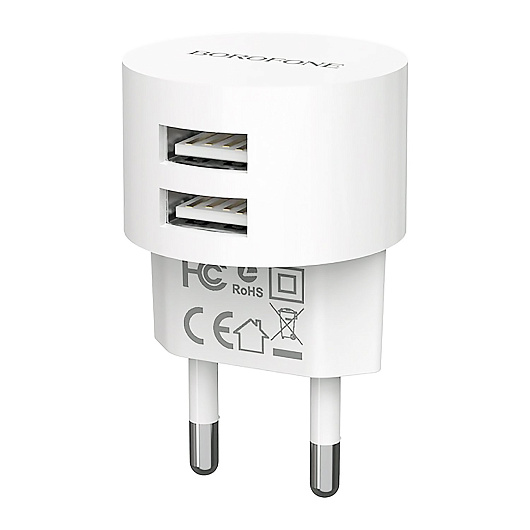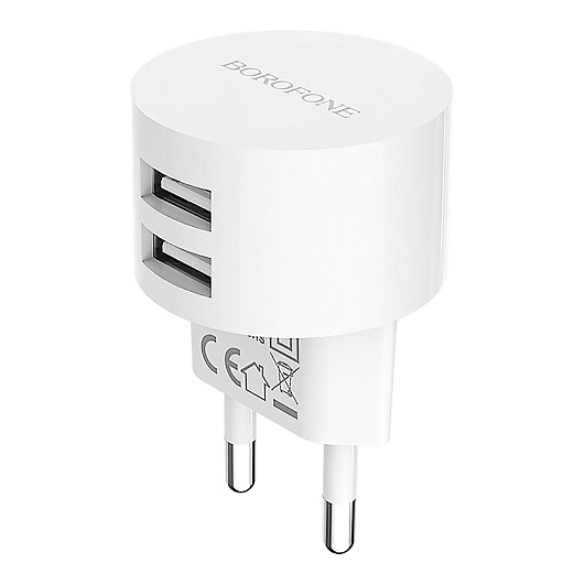 Адаптер Сетевой Borofone BA23A Brilliant 2USB 2,4A/12W (white)