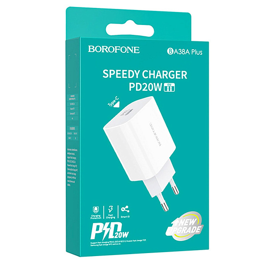 Адаптер Сетевой Borofone BA38A PD Type-C 20W (white)