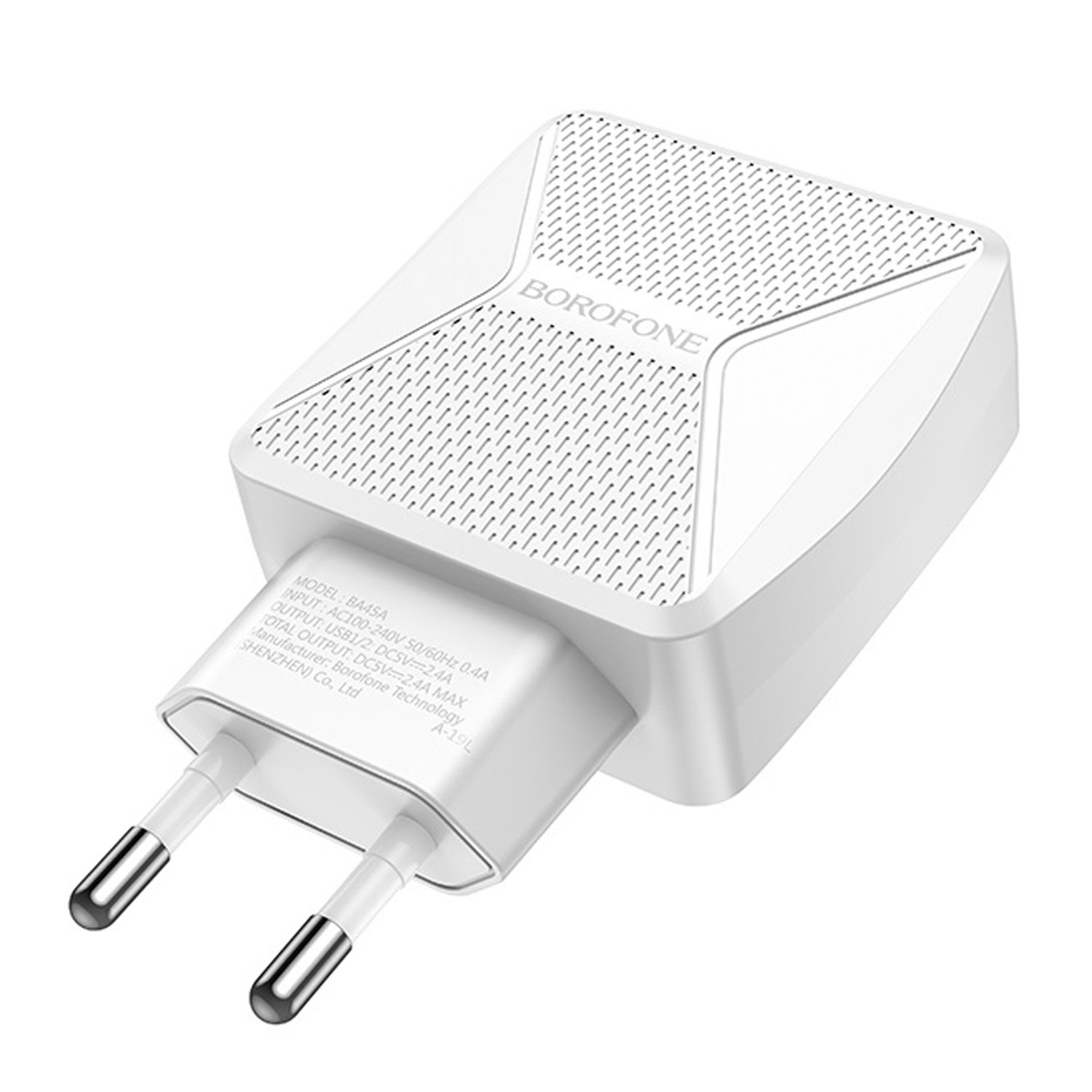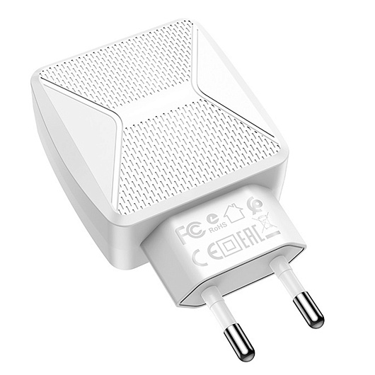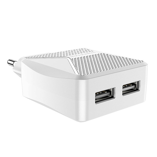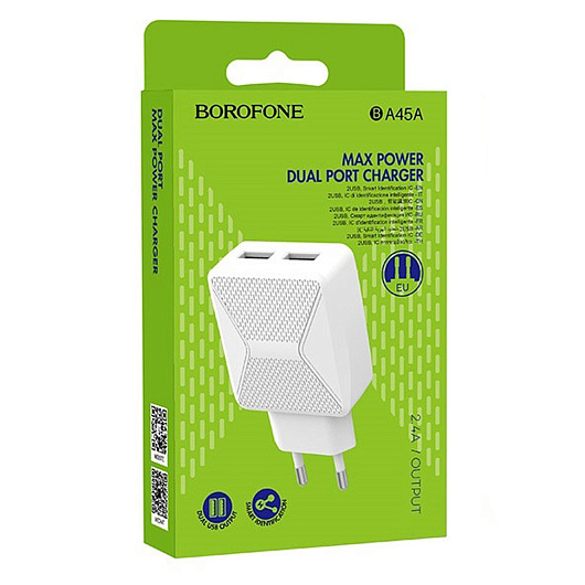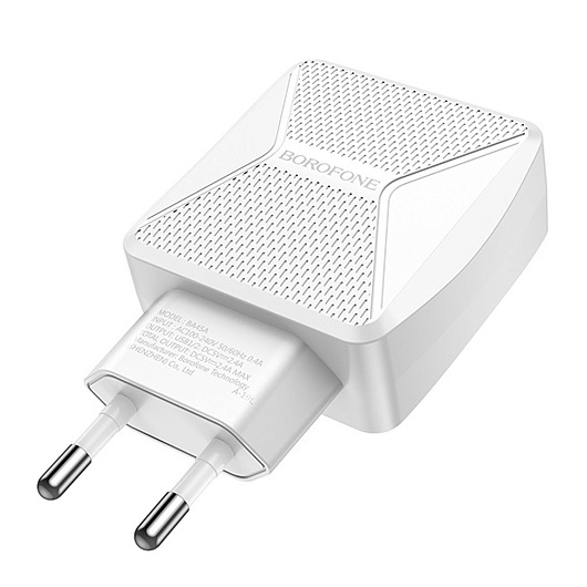 Адаптер Сетевой Borofone BA45A Max 2USB 2,4A/12W (white)