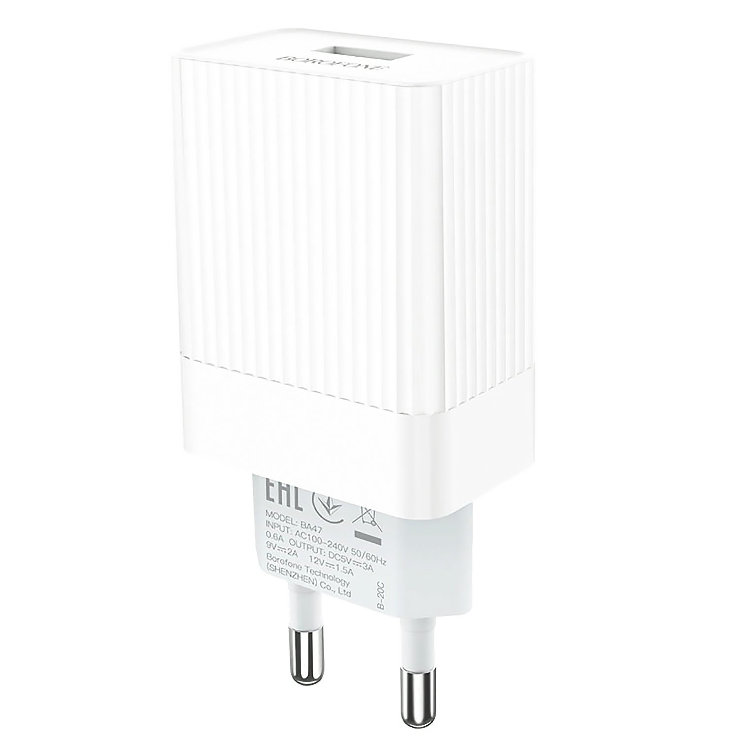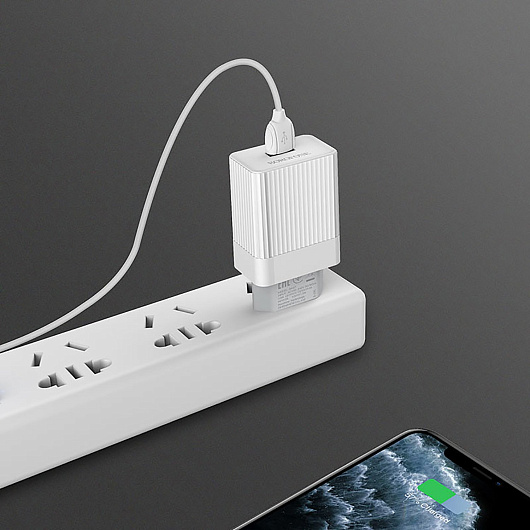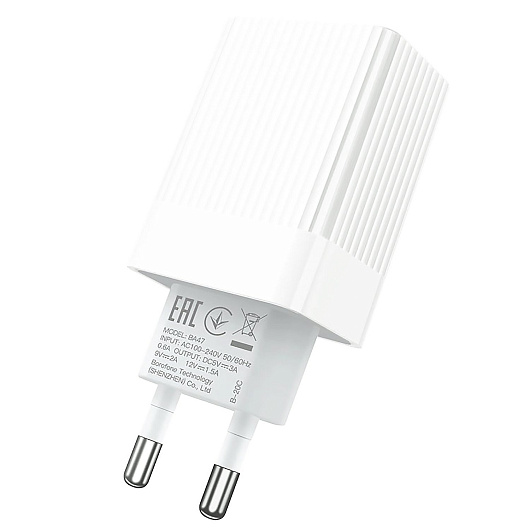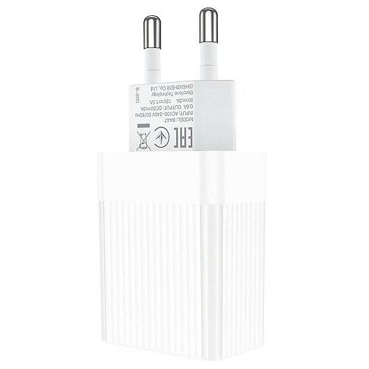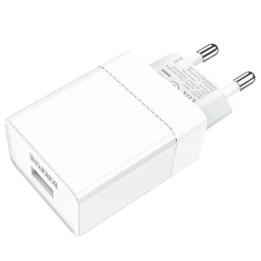 Адаптер Сетевой Borofone BA47A Mighty QC3.0 USB 3A/18W (white)