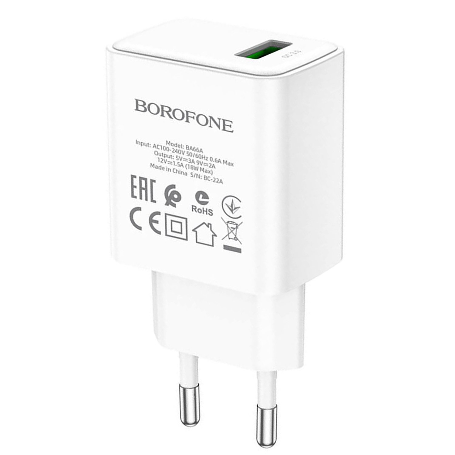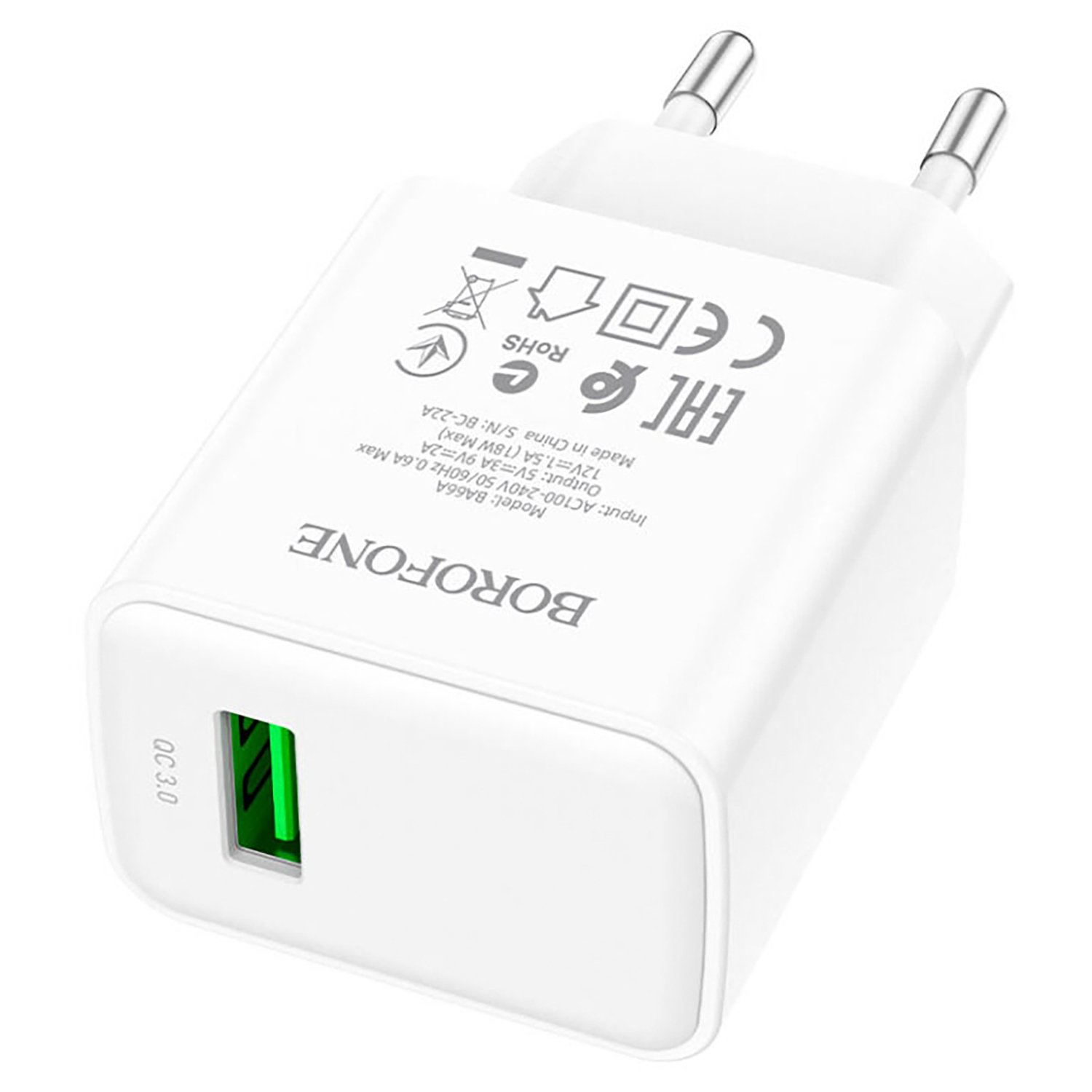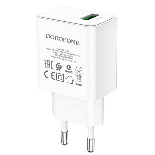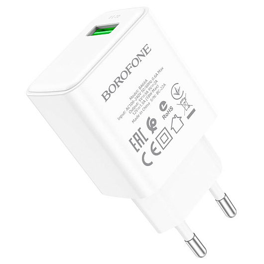 Адаптер Сетевой Borofone BA66A USB 3A/18W (white)