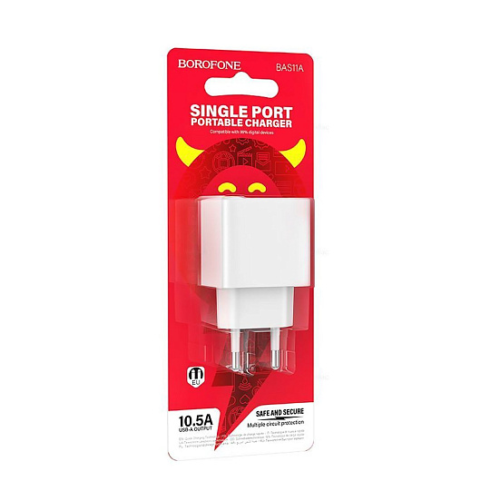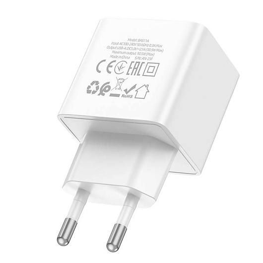 Адаптер Сетевой Borofone BAS11A Erudite USB 2,1A/10W (white)