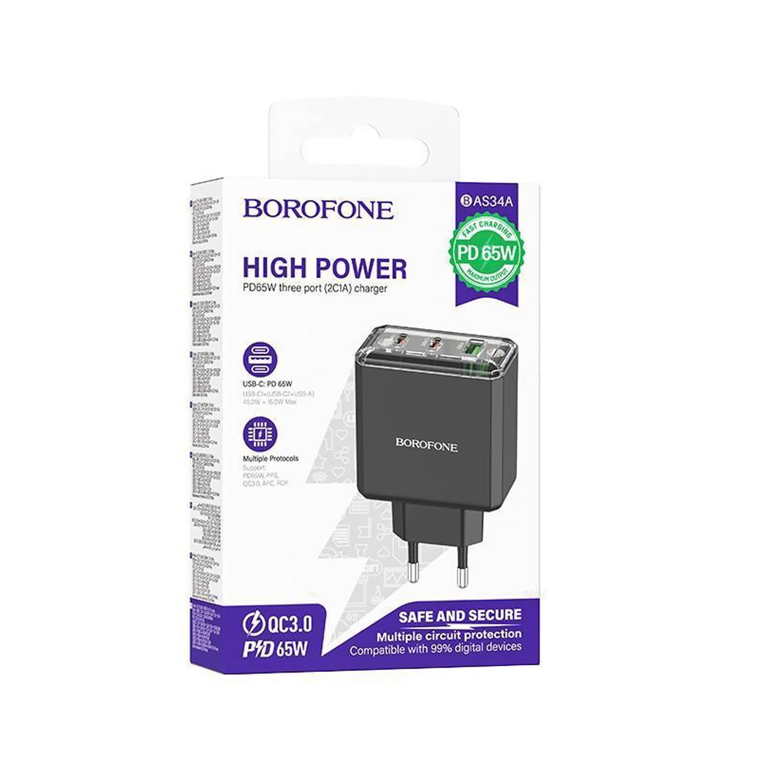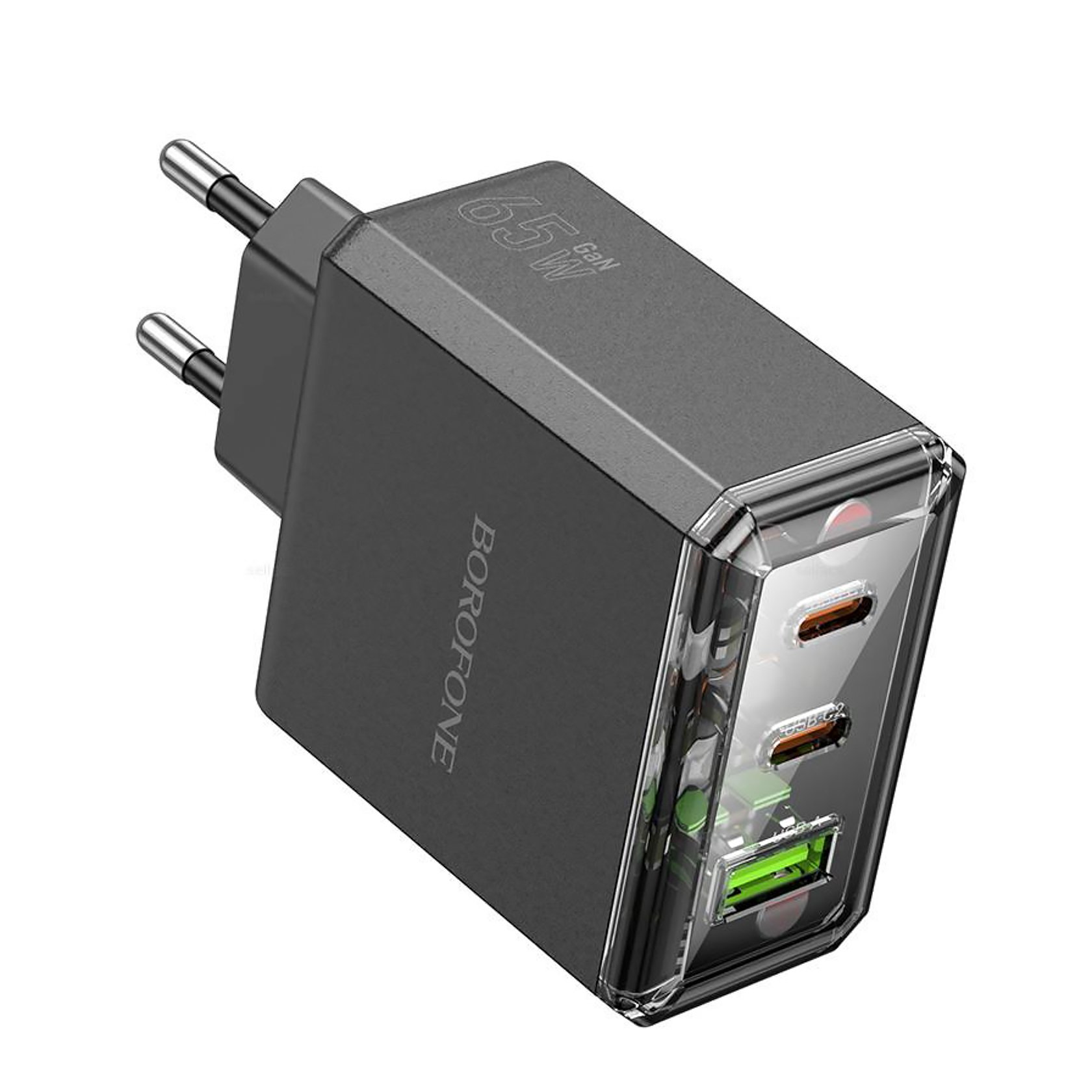 Адаптер Сетевой Borofone BAS34A Treasure 2Type-C/USB 65W (black)
