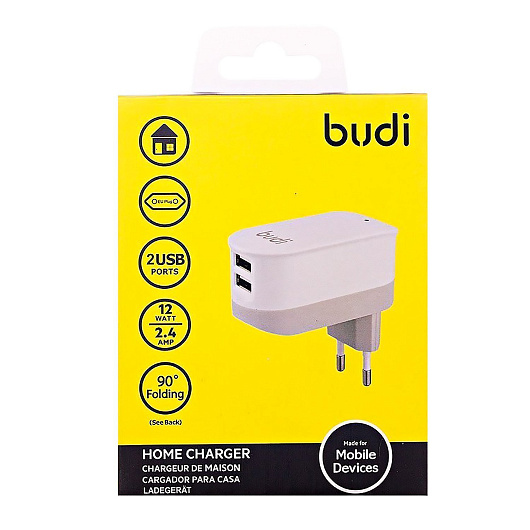 Адаптер Сетевой budi M8J029E 2USB 2,4A/10W (white)