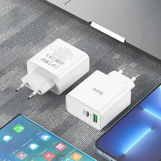 Адаптер Сетевой Hoco C113A PD USB/Type-C 65W (white)