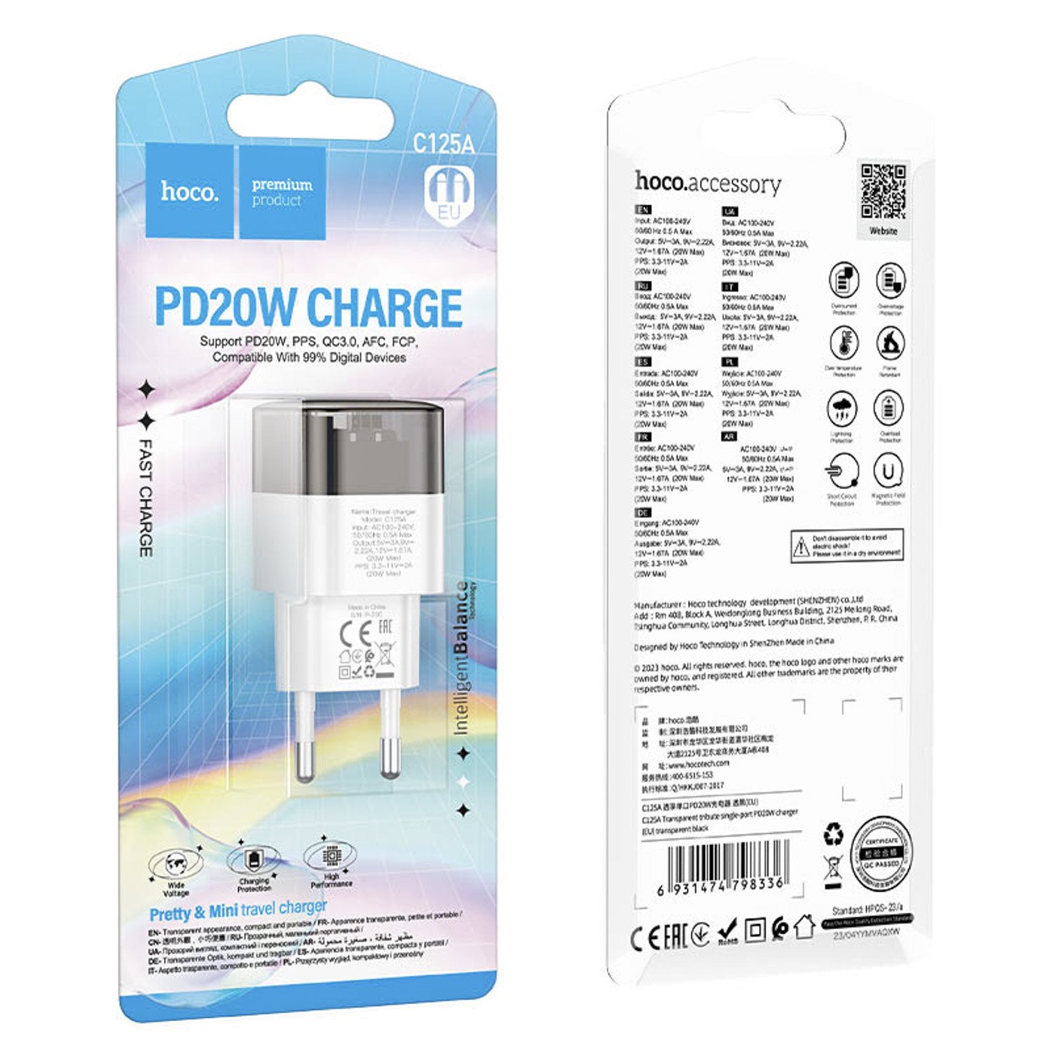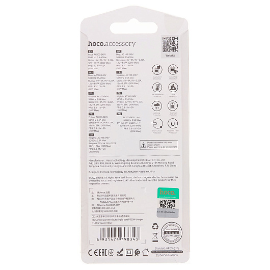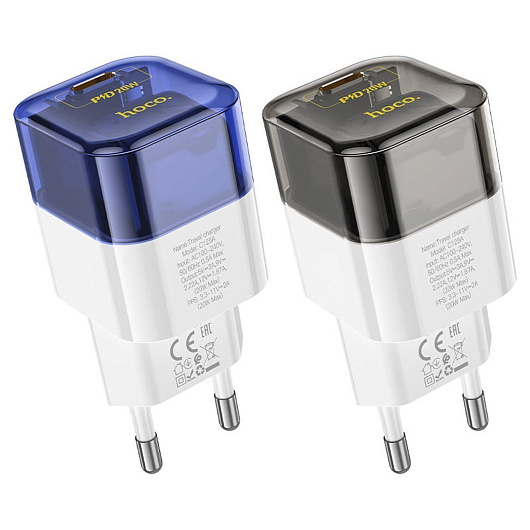 Адаптер Сетевой Hoco C125A Transparent PD Type-C 3A/20W (black/white)