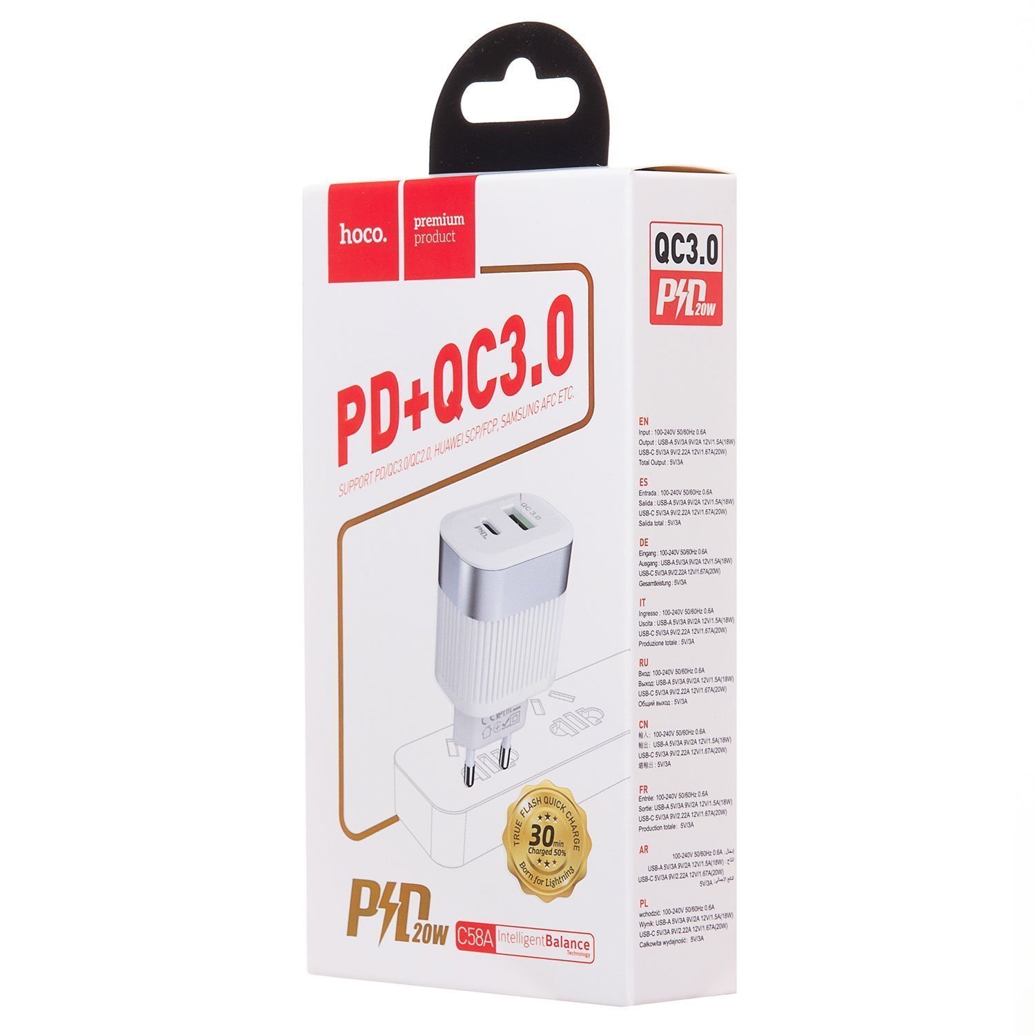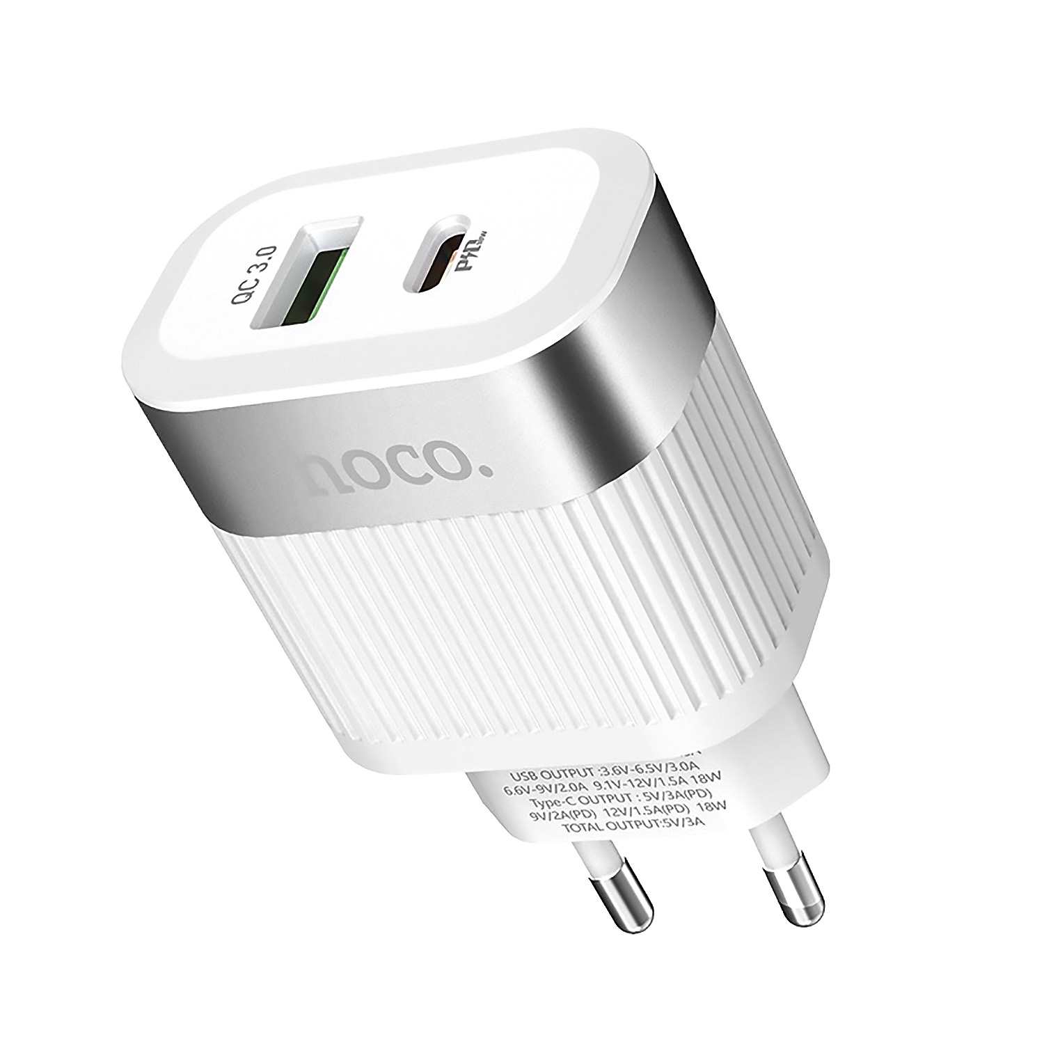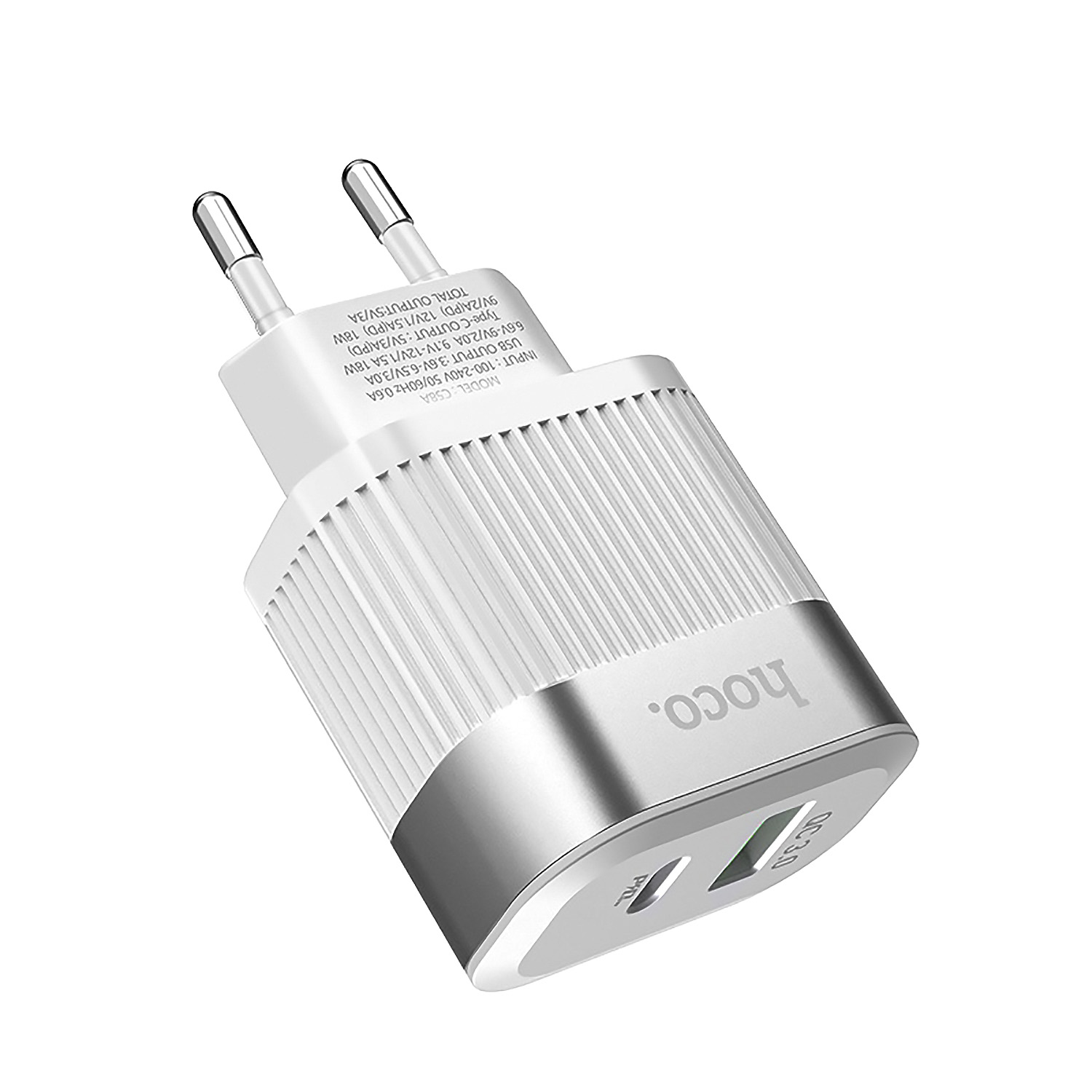 Адаптер Сетевой Hoco C58A Prominent PD QC3.0 USB/Type-C 3A/20W (white)