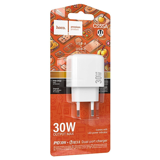 Адаптер Сетевой Hoco CS55A Surplus PD+QC3.0 USB/Type-C 30W (white)