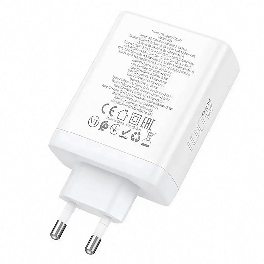 Адаптер Сетевой Hoco N31 PD 3Type-C/USB 100W (white)
