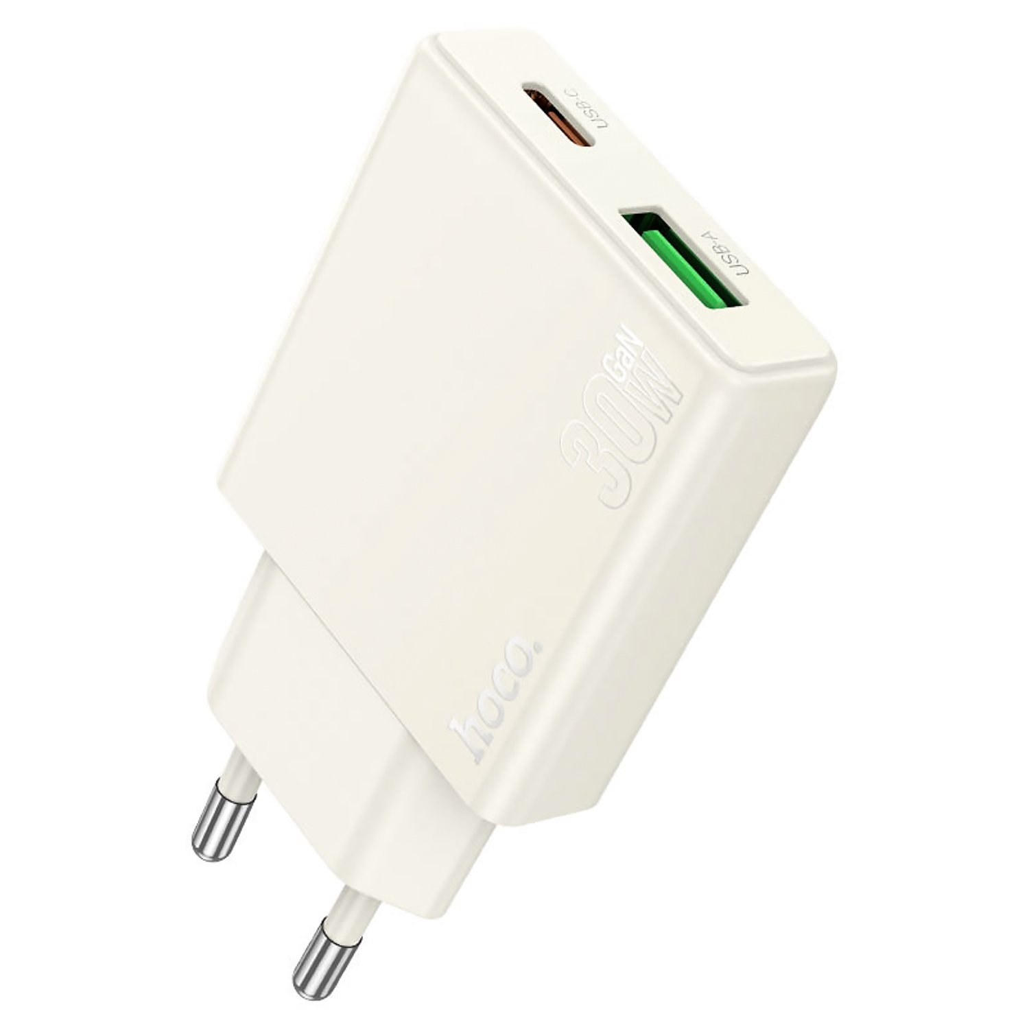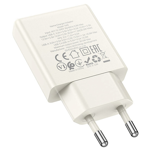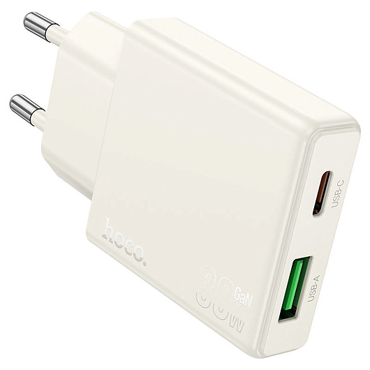 Адаптер Сетевой Hoco N45 Biscuit PD+QC3.0 USB/Type-C 30W (moonlight white)