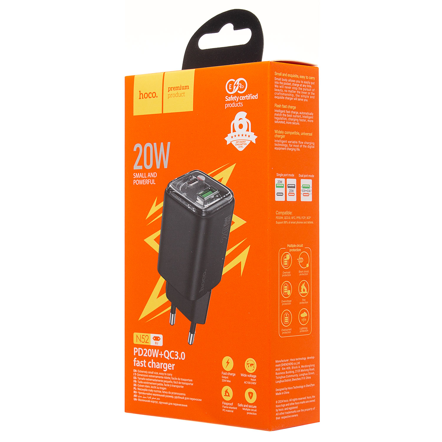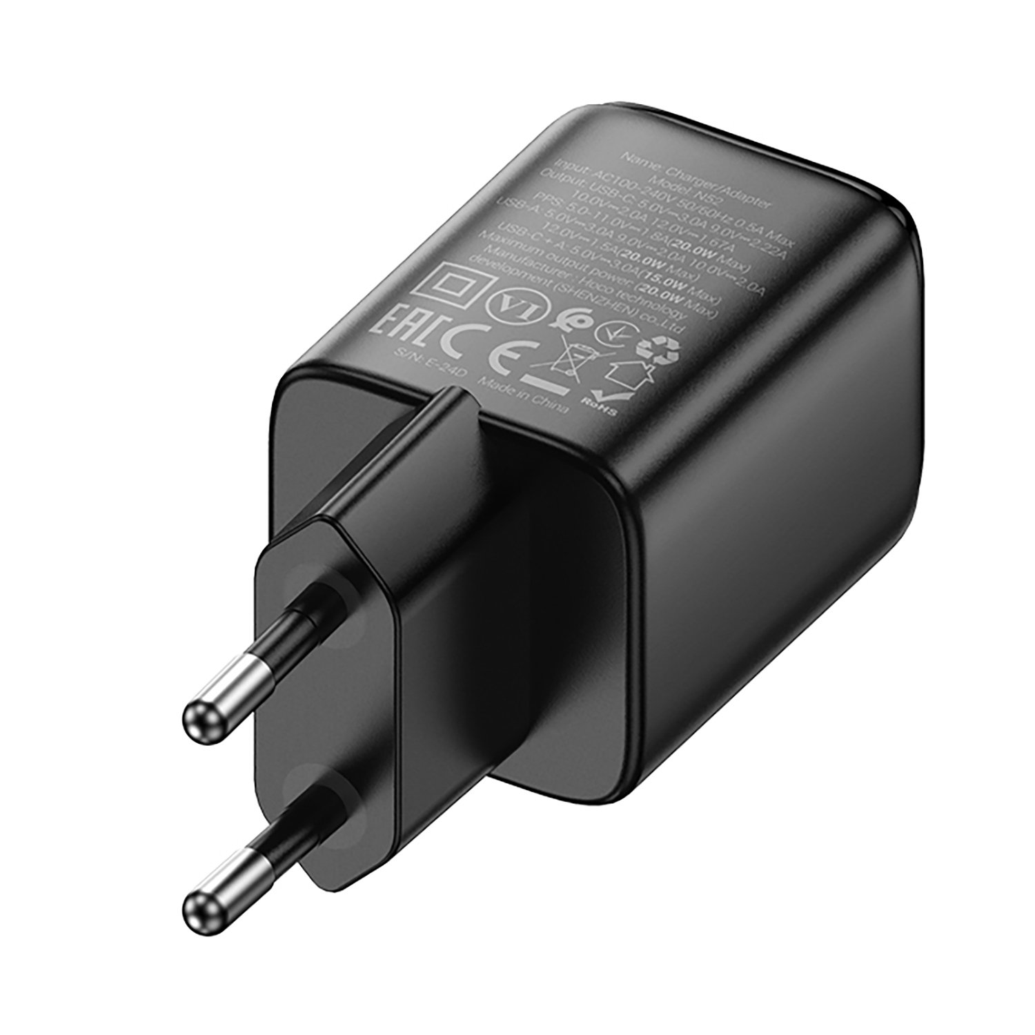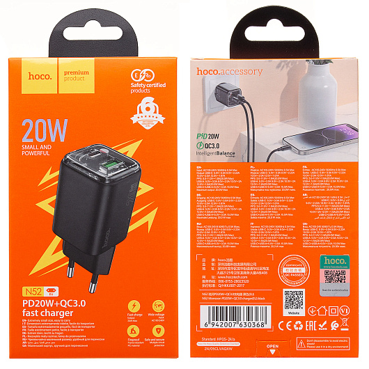 Адаптер Сетевой Hoco N52 USB/Type-C 3A/20W (black)