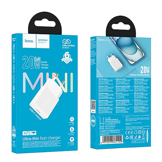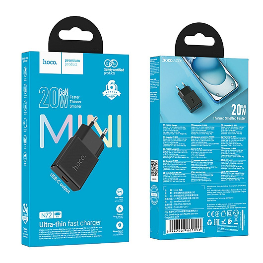 Адаптер Сетевой Hoco N72 Mini PD Type-C 3A/20W (black)