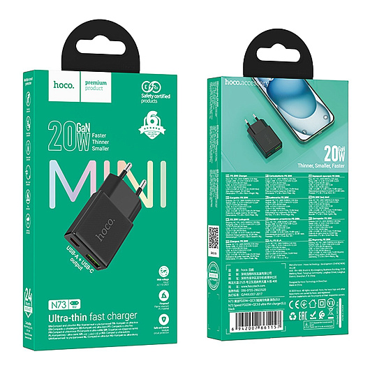 Адаптер Сетевой Hoco N73 Mini PD+QC3.0 USB/Type-C 3A/20W (black)
