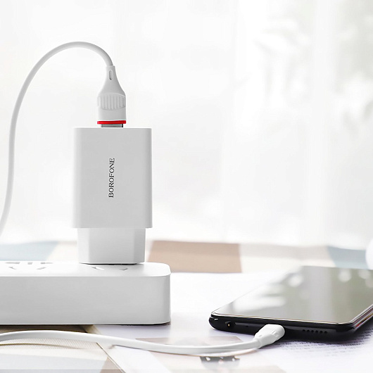 Адаптер Сетевой с кабелем Borofone BA21A Long QC3.0* USB 3A/18W (USB/Micro USB) (white)