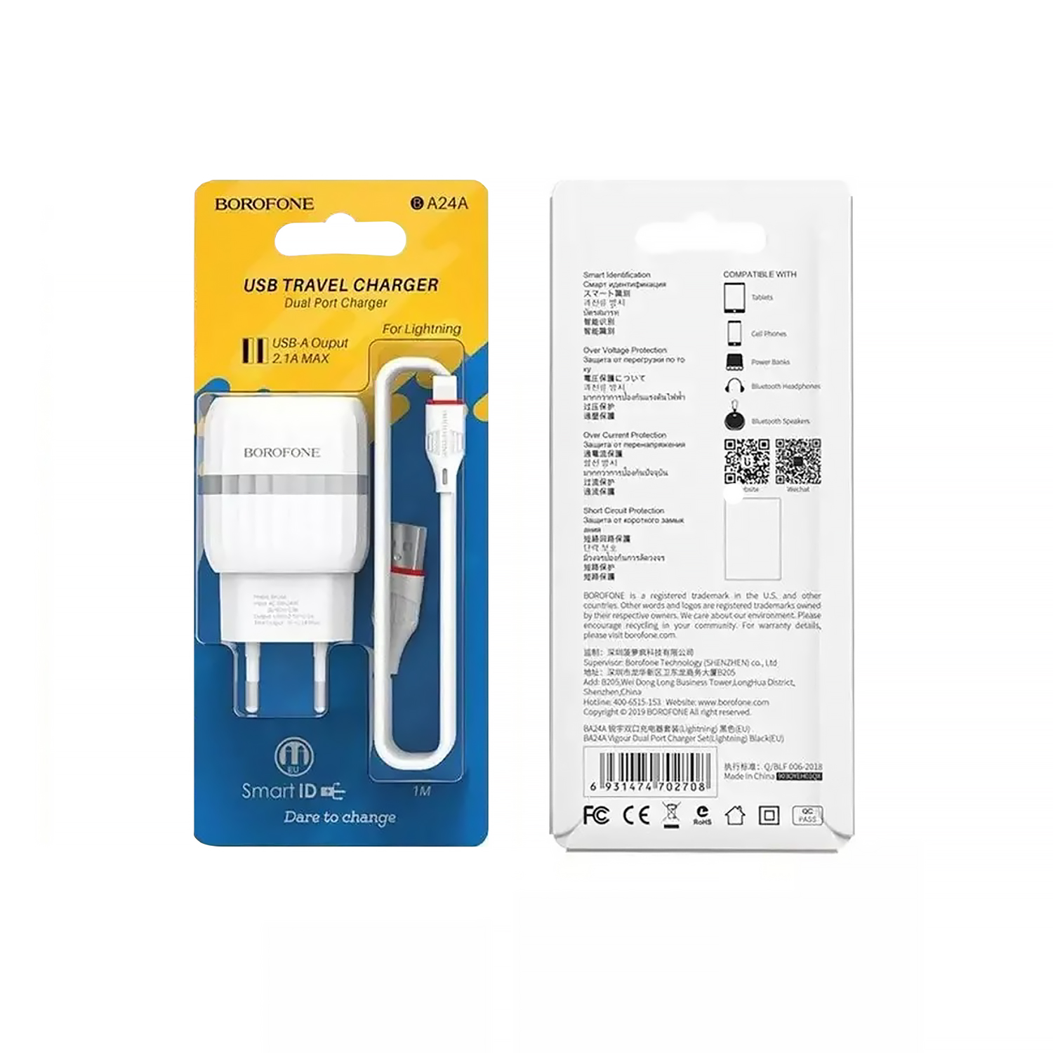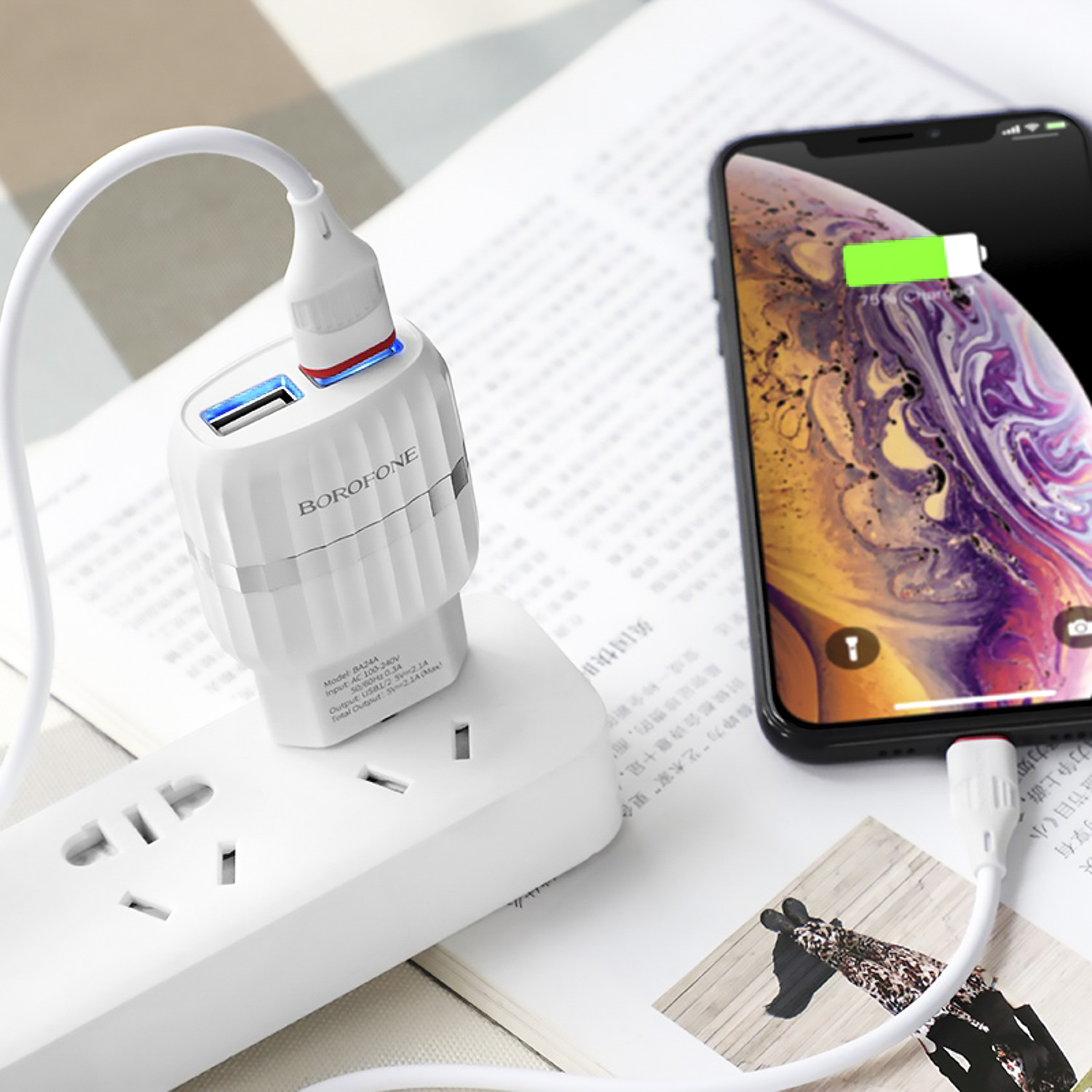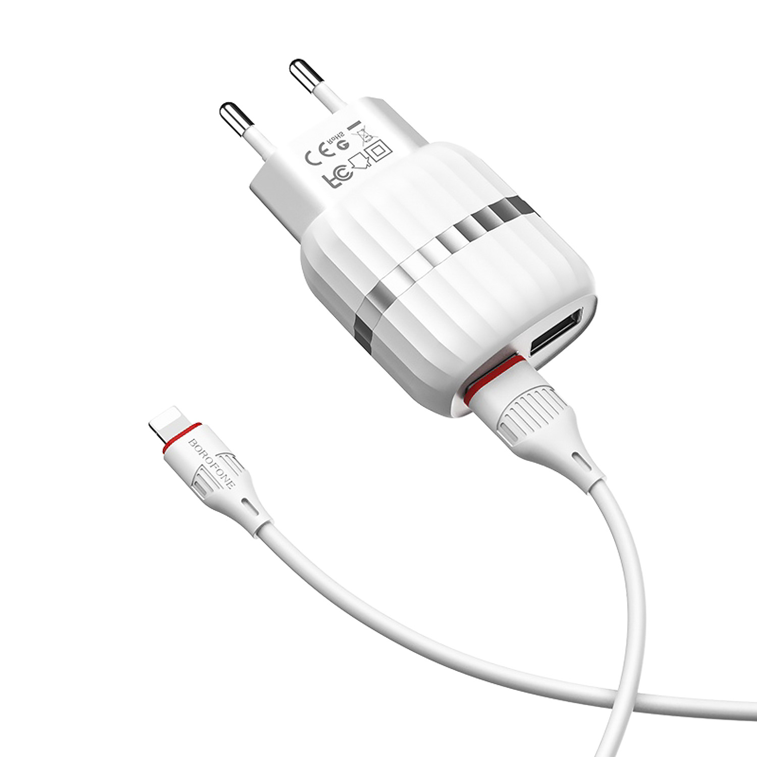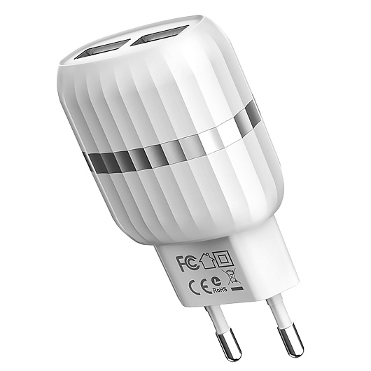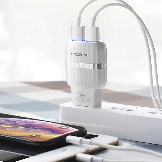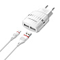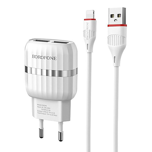 Адаптер Сетевой с кабелем Borofone BA24A Vigour 2USB 2,1A/10W (USB/Lightning) (white)