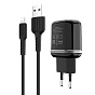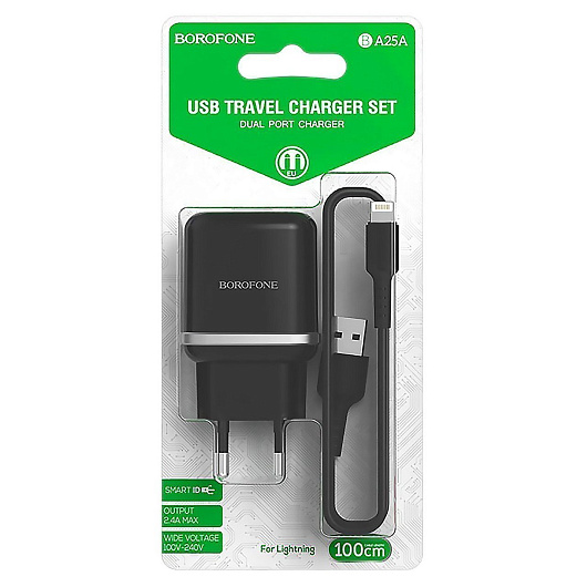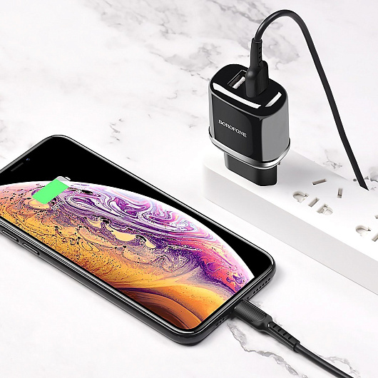 Адаптер Сетевой с кабелем Borofone BA25A Outstanding 2USB 2,4A/10W (USB/Lightning) (black)