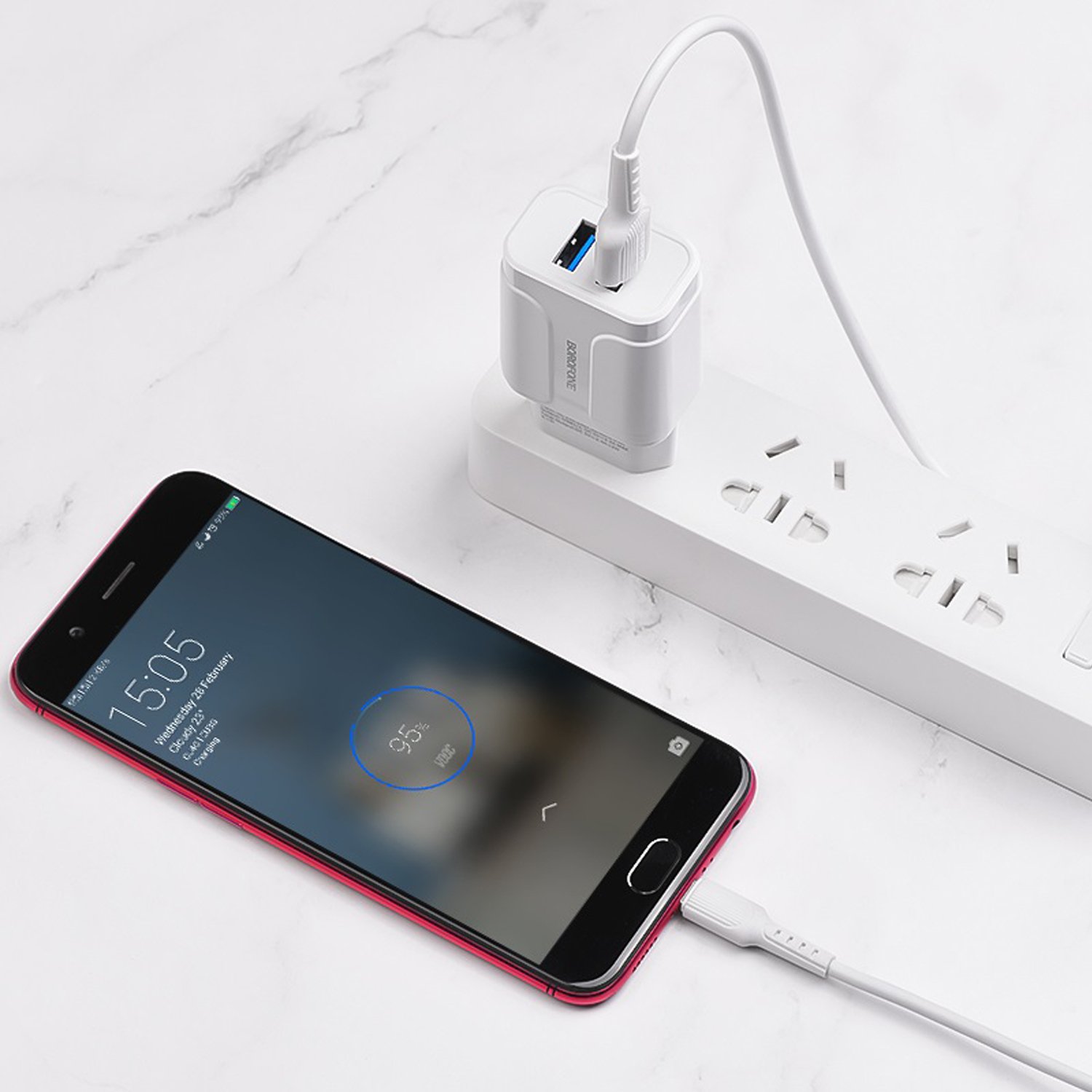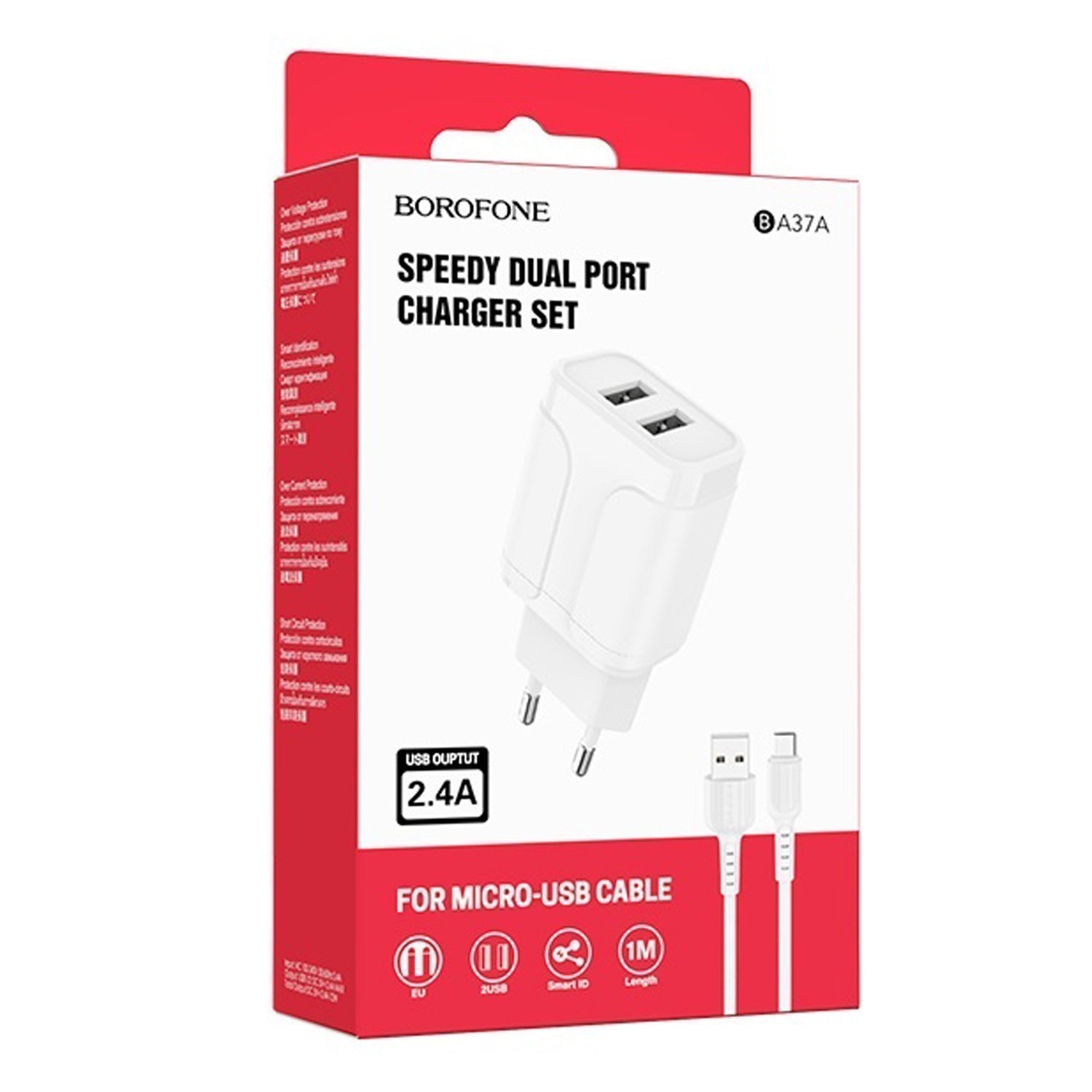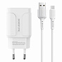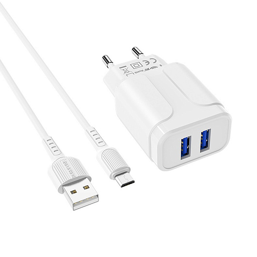 Адаптер Сетевой с кабелем Borofone BA37A Speedy 2USB 2,4A/10W (USB/Micro USB) (white)