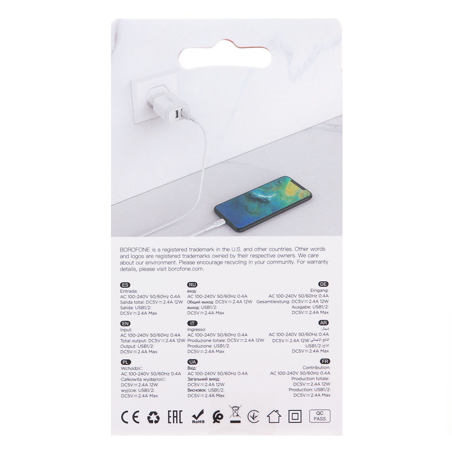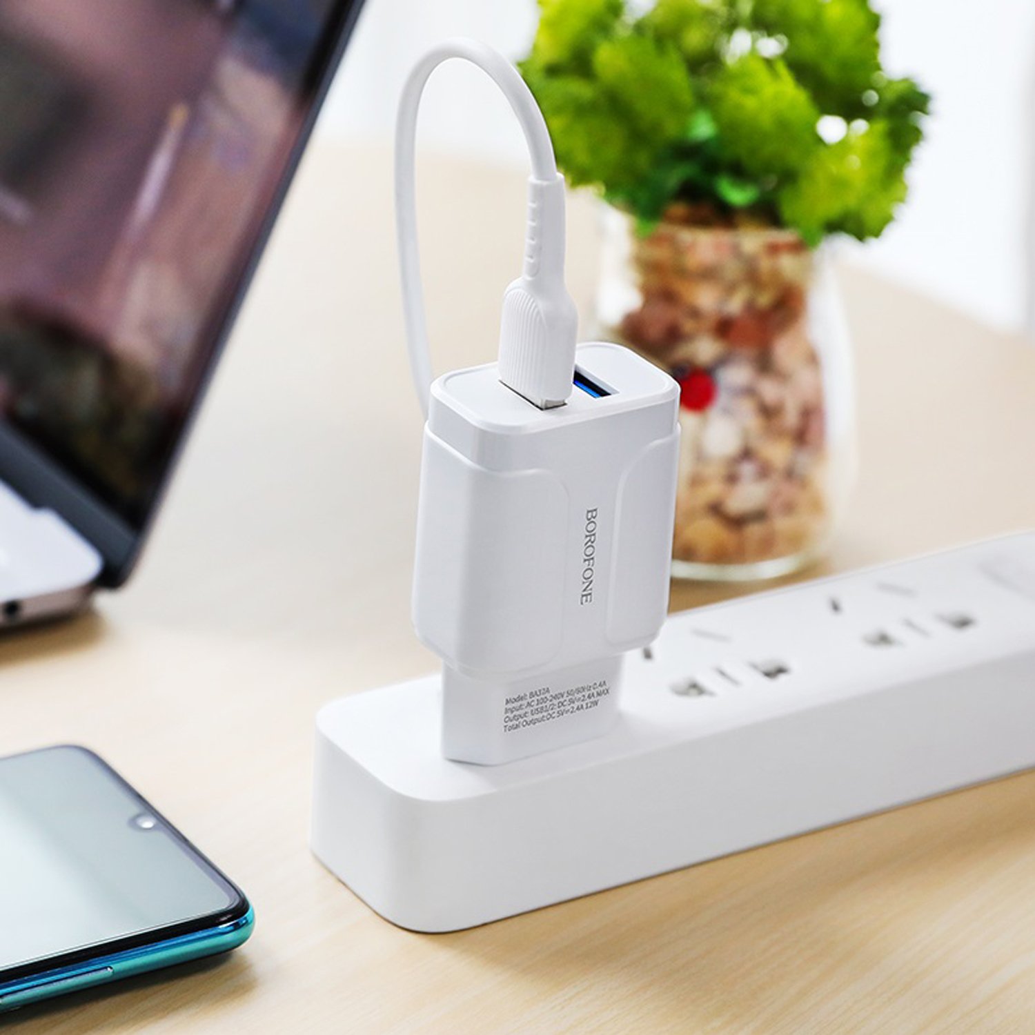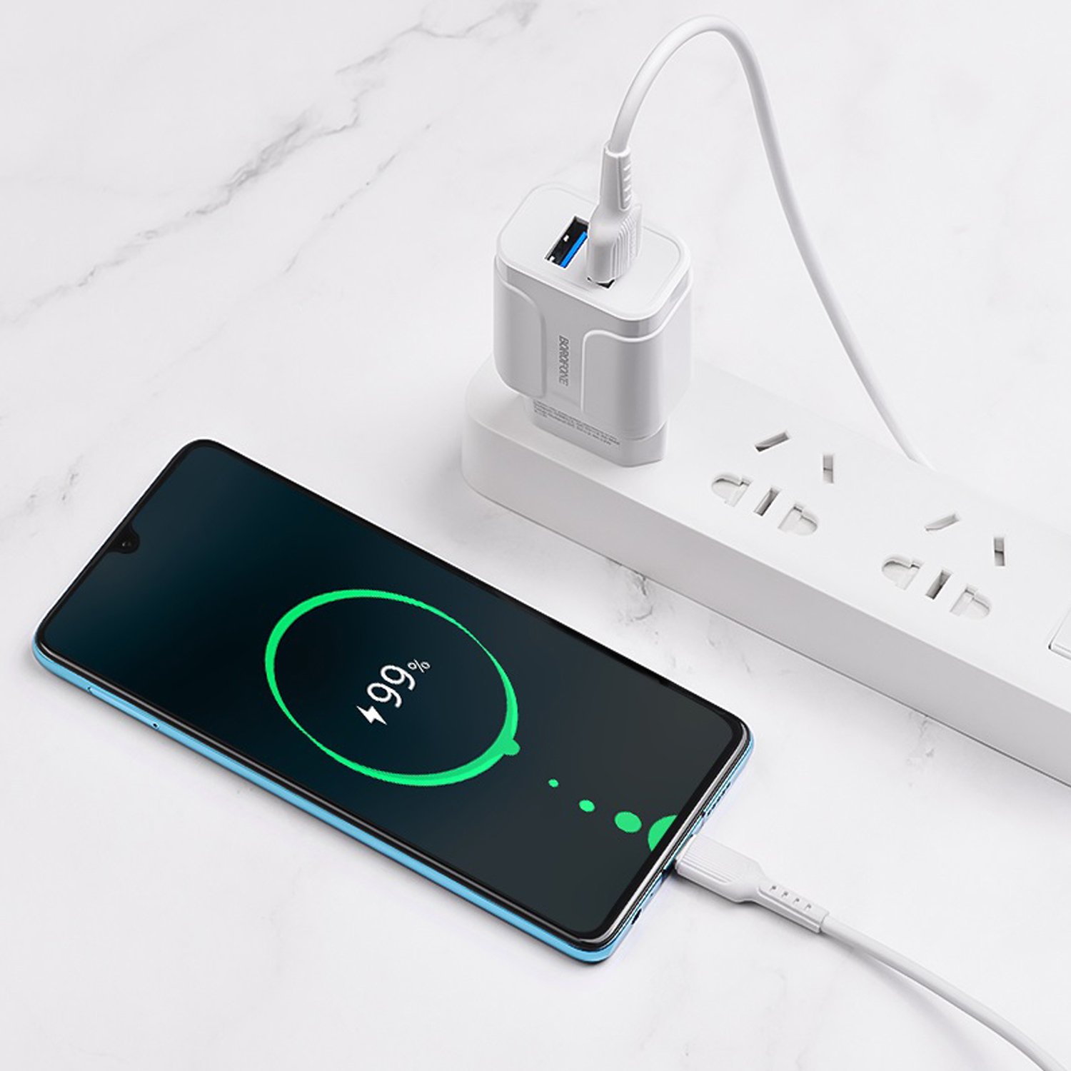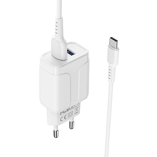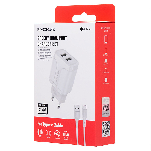 Адаптер Сетевой с кабелем Borofone BA37A Speedy 2USB 2,4A/10W (USB/Type-C) (white)