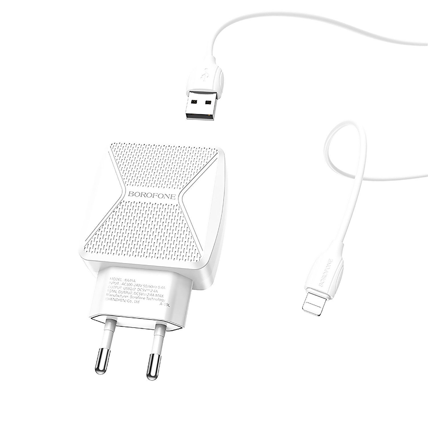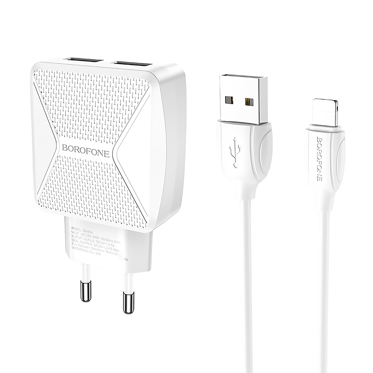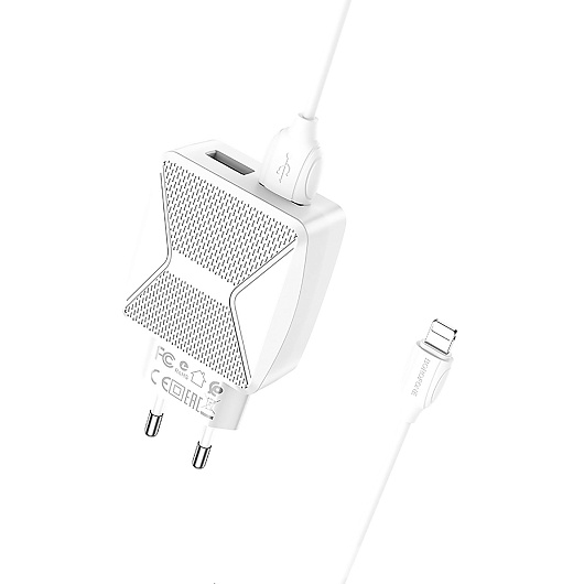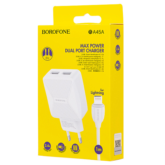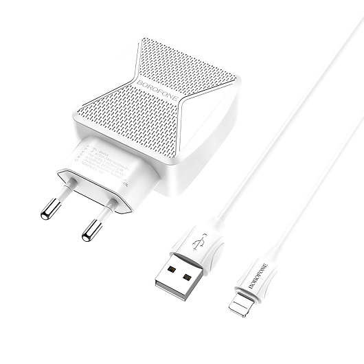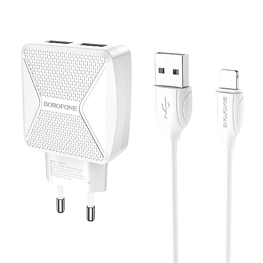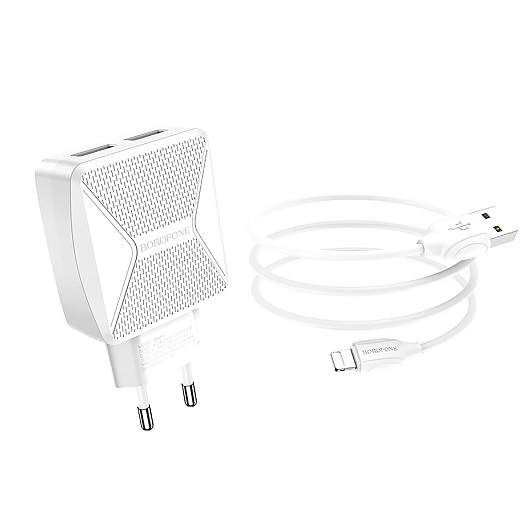 Адаптер Сетевой с кабелем Borofone BA45A Max 2USB 2,4A/10W (USB/Lightning) (white)