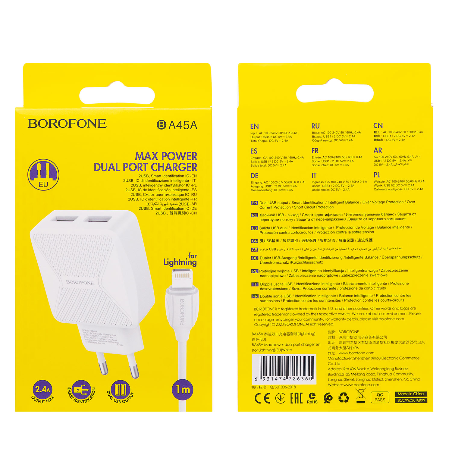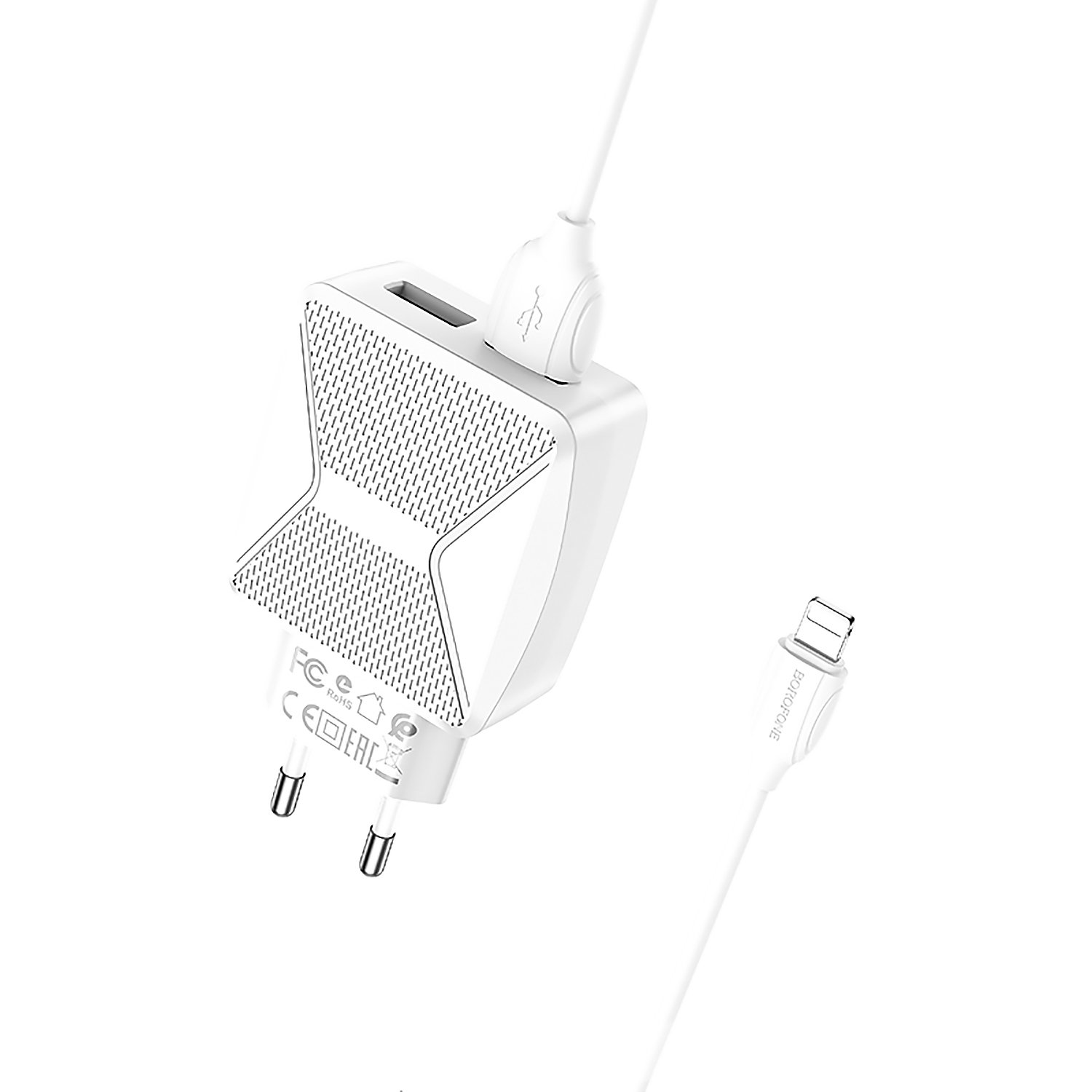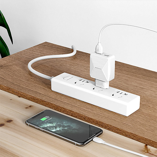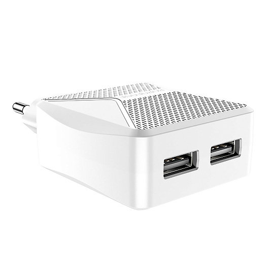 Адаптер Сетевой с кабелем Borofone BA45A Max 2USB 2,4A/10W (USB/Lightning) (white)