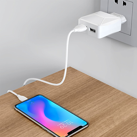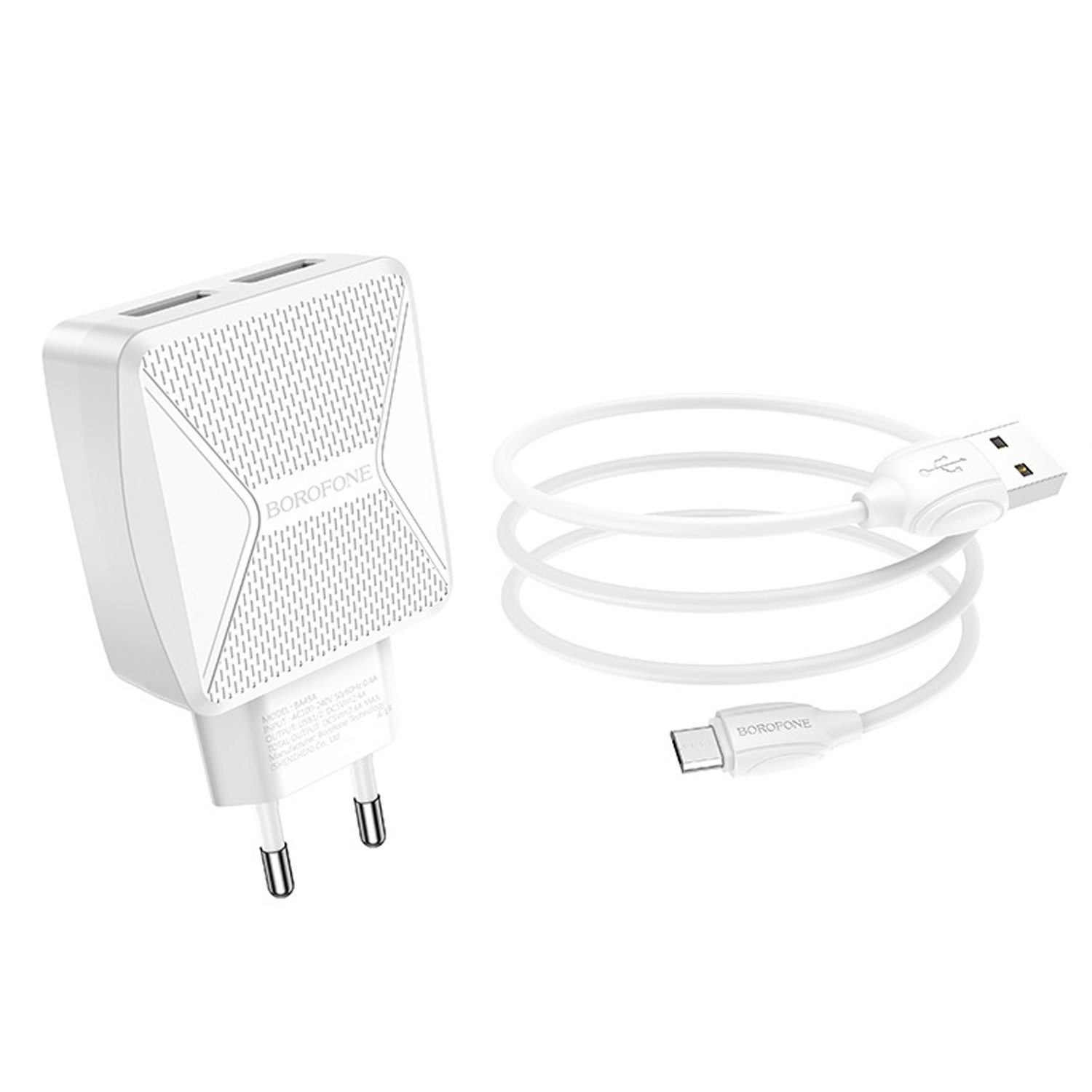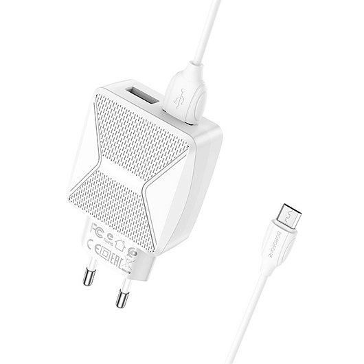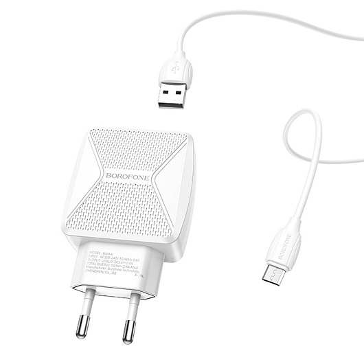 Адаптер Сетевой с кабелем Borofone BA45A Max 2USB 2,4A/12W (USB/Micro USB) (white)