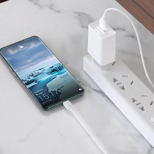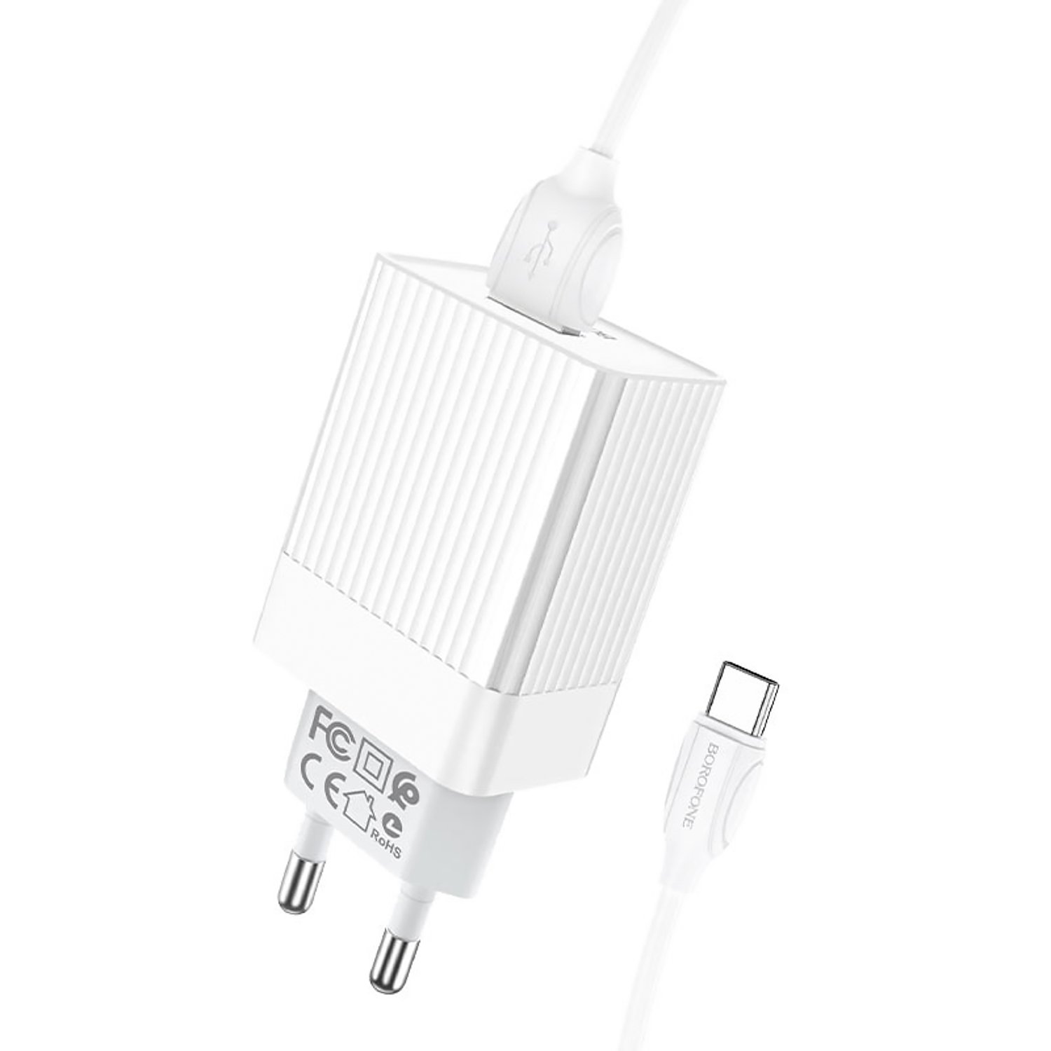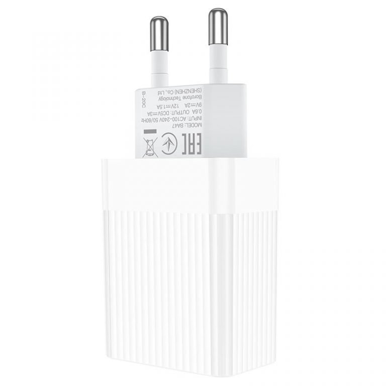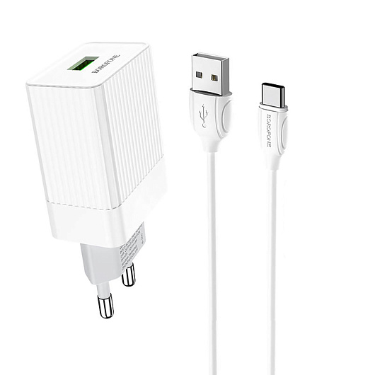 Адаптер Сетевой с кабелем Borofone BA47A Mighty QC3.0 USB 3A/18W (USB/Type-C) (white)