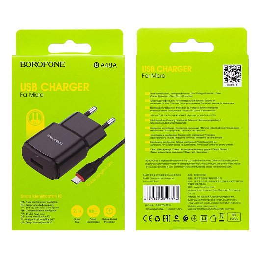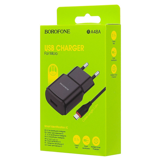 Адаптер Сетевой с кабелем Borofone BA48A Orion USB 2,1A/10W (USB/Micro USB) (black)