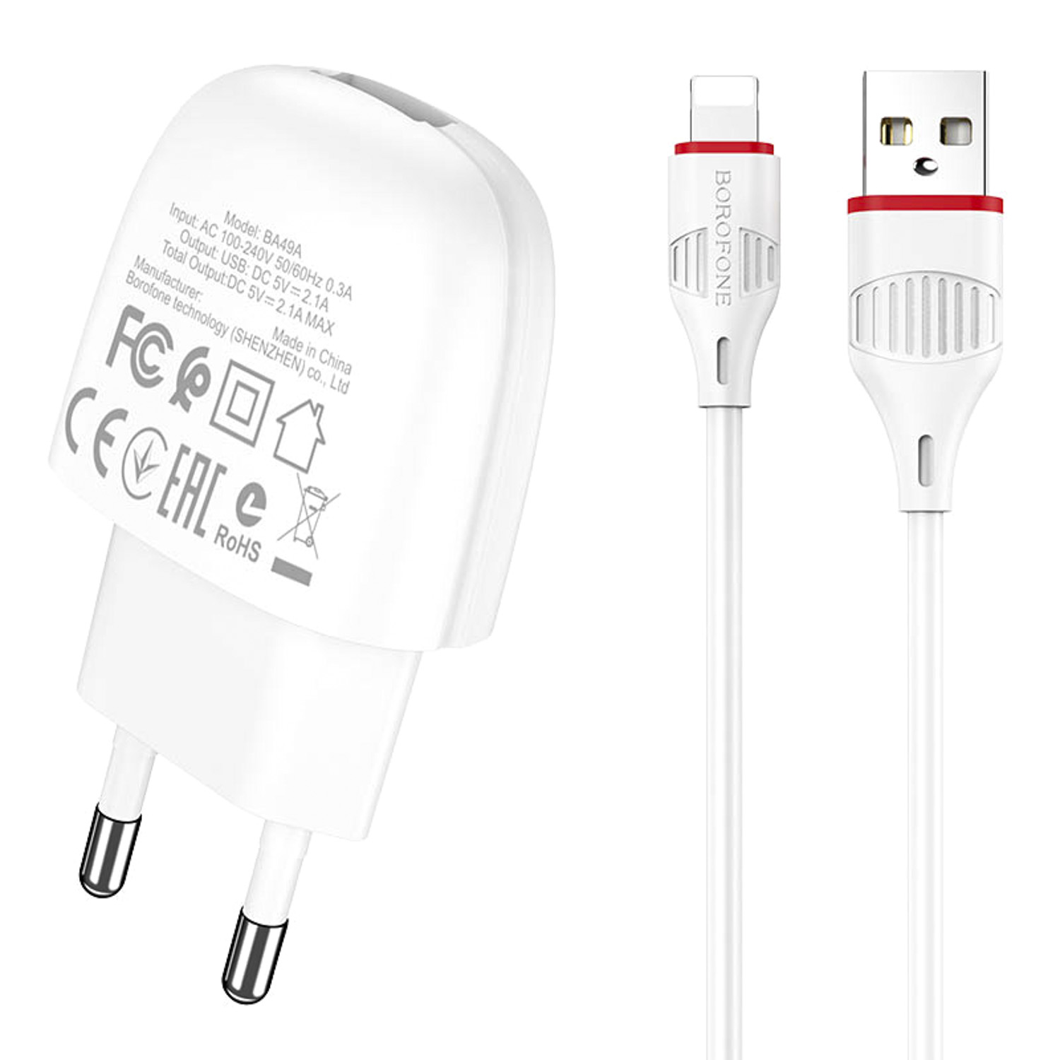 Адаптер Сетевой с кабелем Borofone BA49A Vast (повр. уп.) USB 2,1A/10W (USB/Lightning) (white)