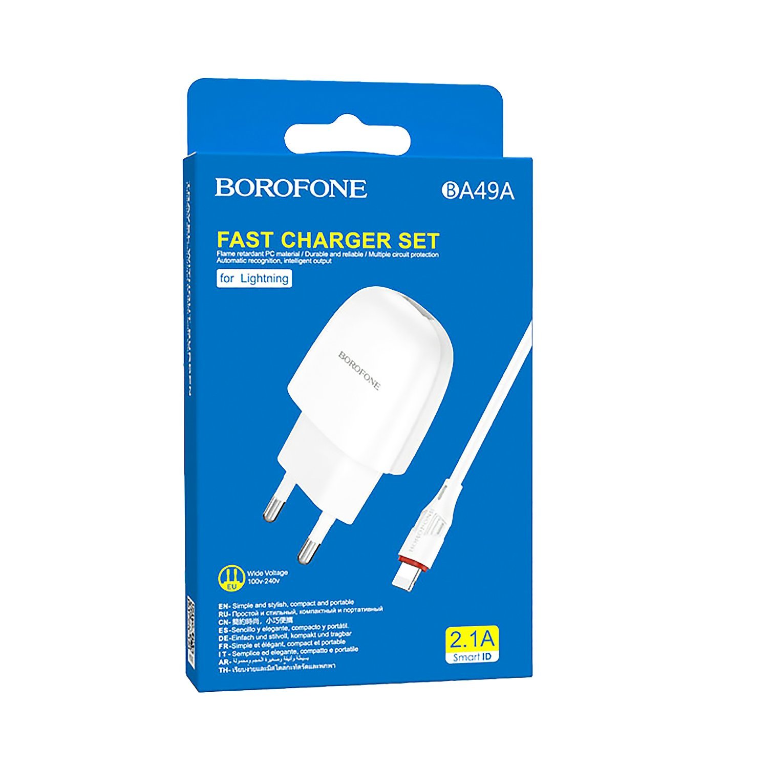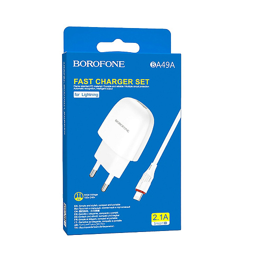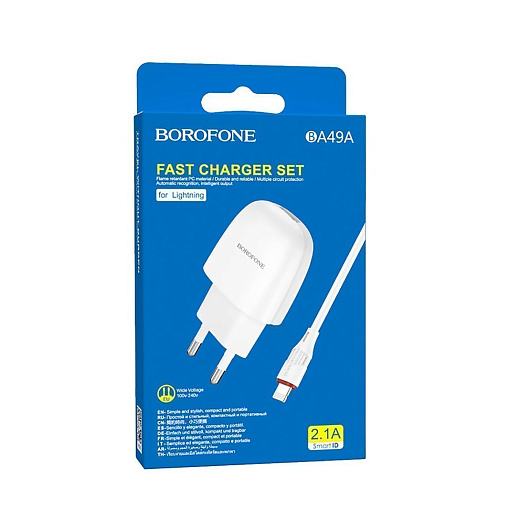 Адаптер Сетевой с кабелем Borofone BA49A Vast USB 2,1A/10W (USB/Lightning) (white)