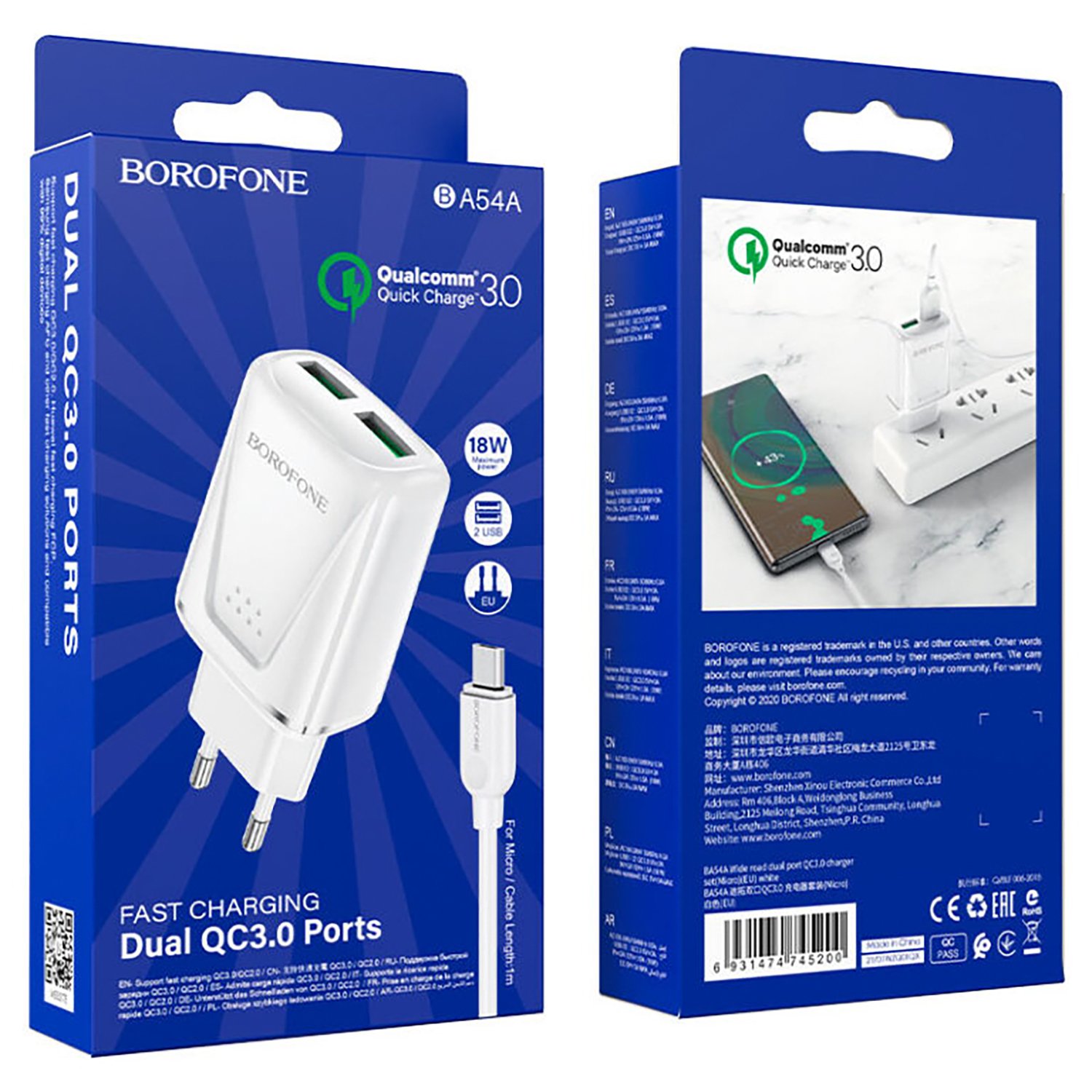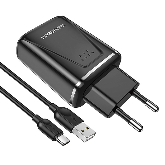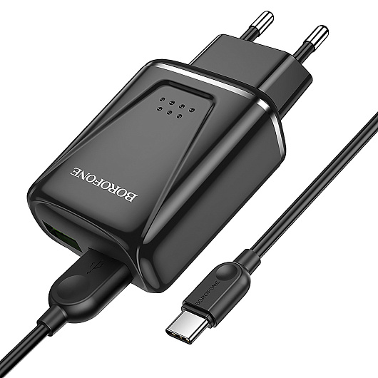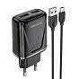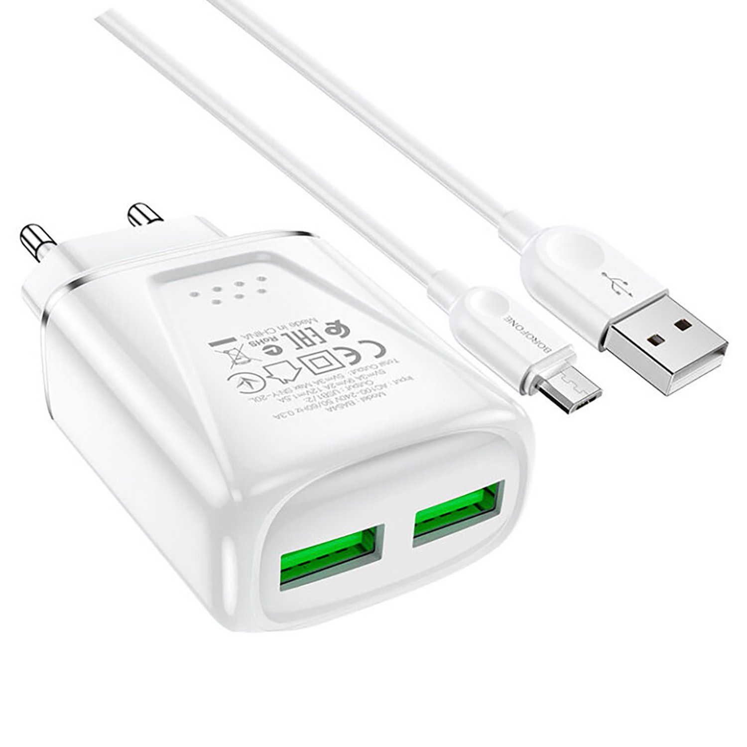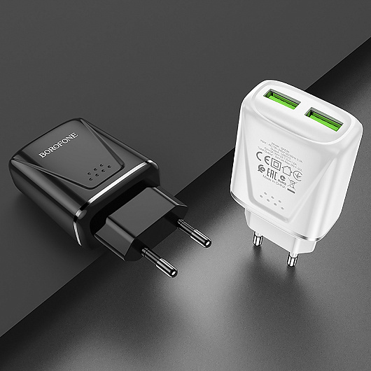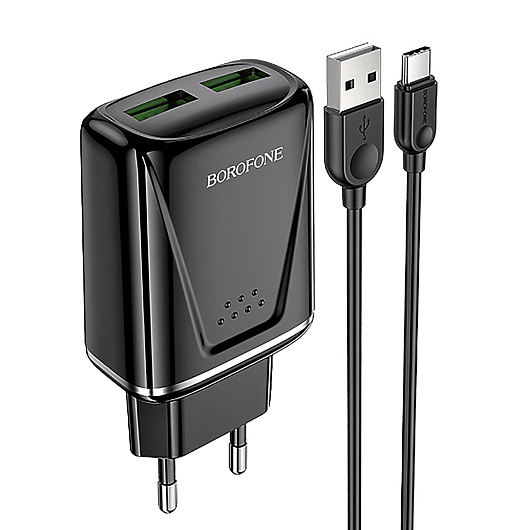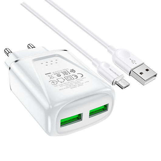 Адаптер Сетевой с кабелем Borofone BA54A Wide QC 2USB 18W (USB/Micro USB) (white)