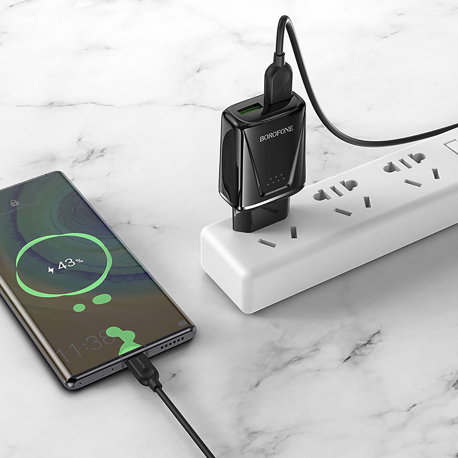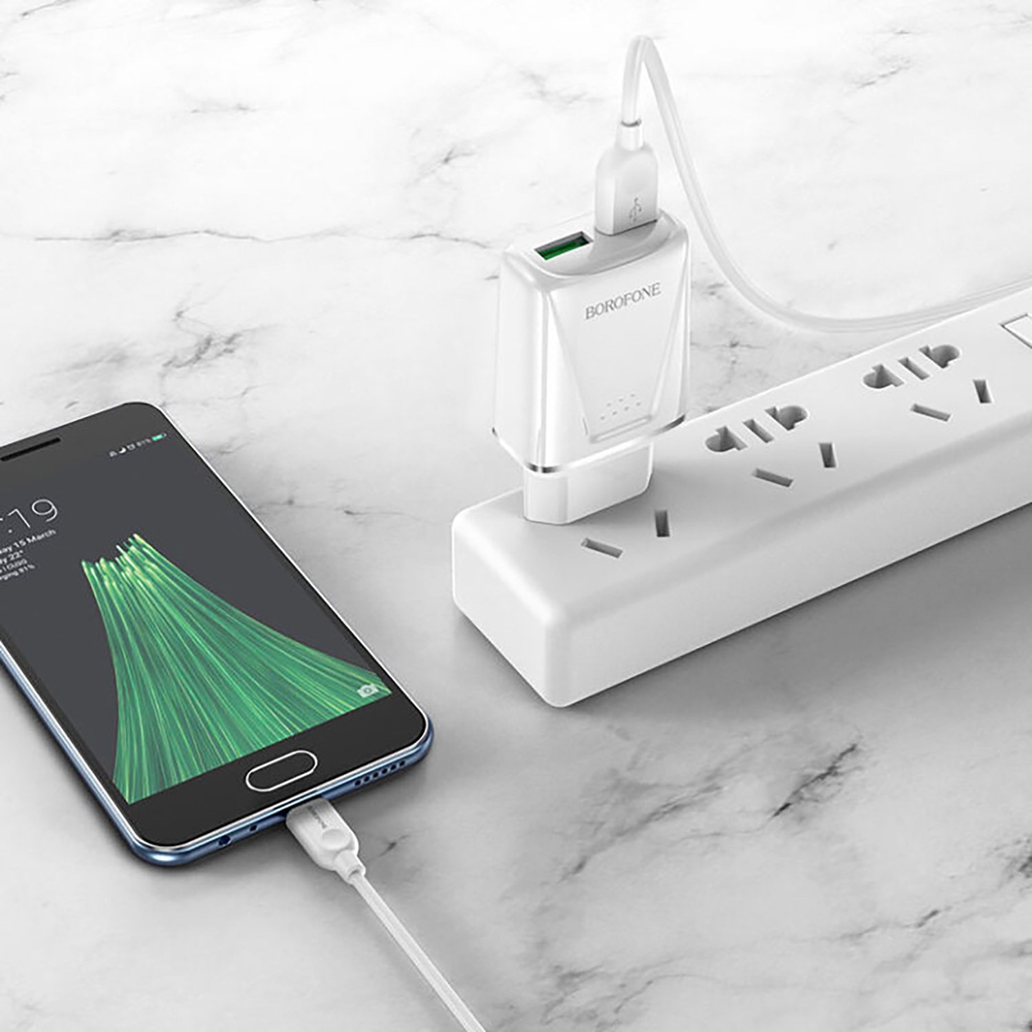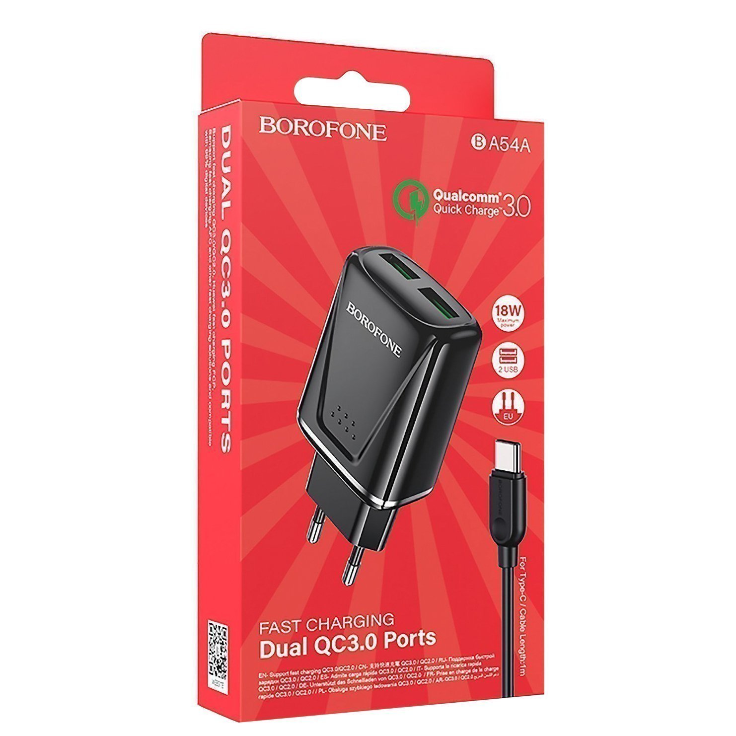 Адаптер Сетевой с кабелем Borofone BA54A Wide QC 2USB 18W (USB/Micro USB) (white)