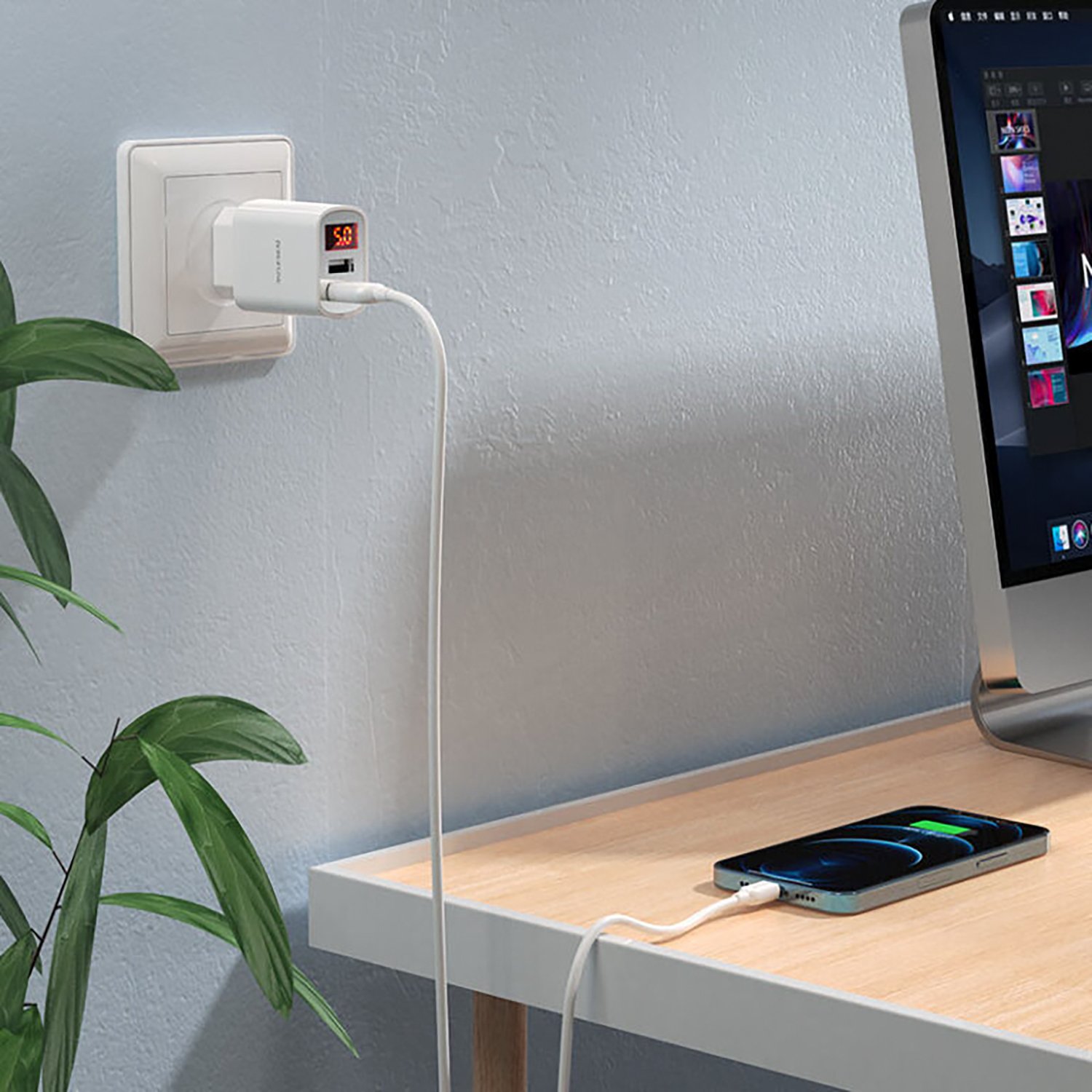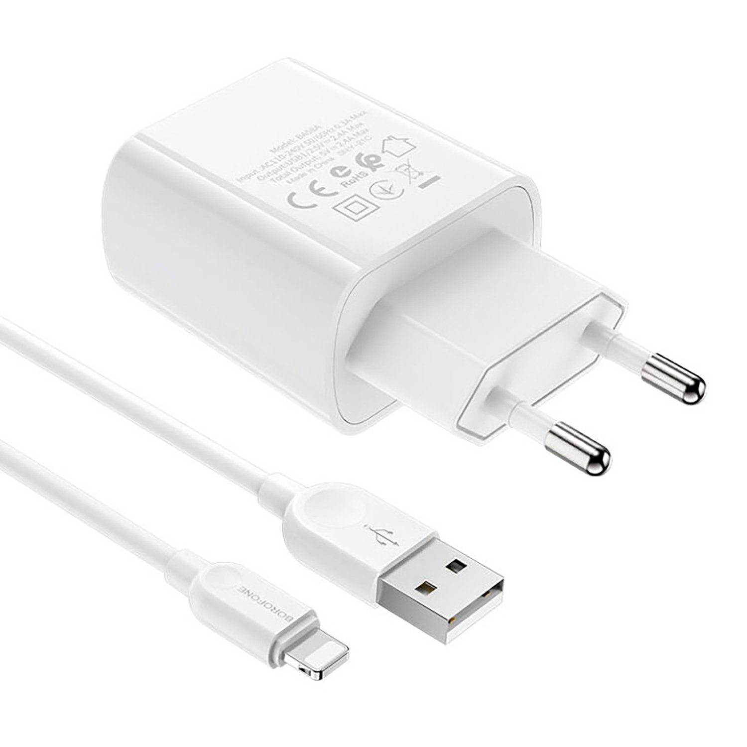 Адаптер Сетевой с кабелем Borofone BA58A 2USB 2,4A/10W (USB/Lightning) (white)